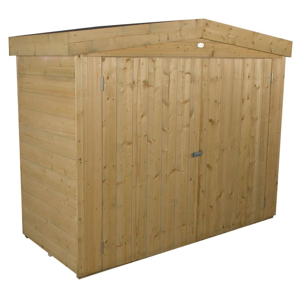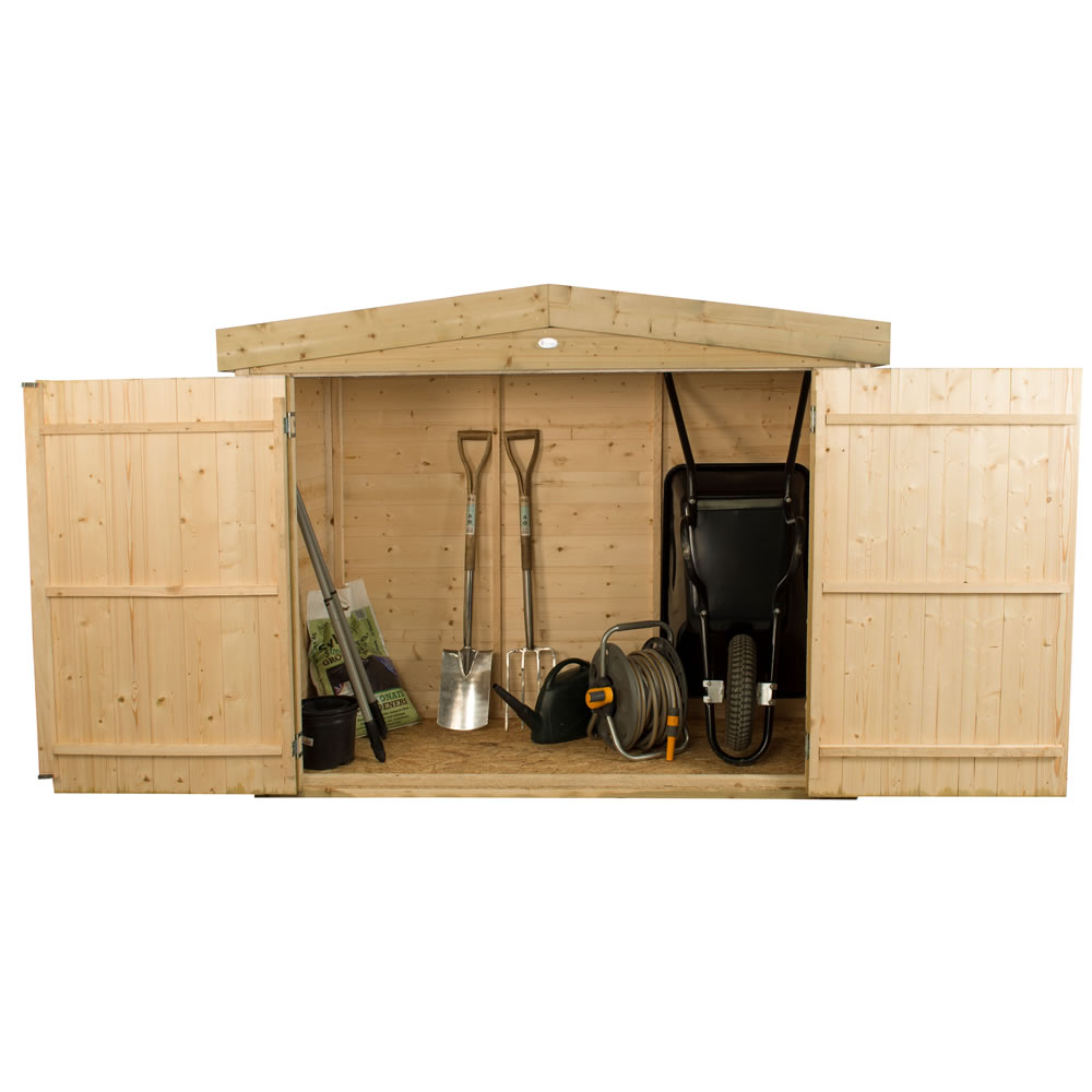 The stylish and spacious Forest Garden shiplap large outdoor store is made from high-quality interlocking Shiplap tongue and groove pressure-treated boards and is ideal for those larger garden items you want to protect from the weather and keep safe. It is a great-looking alternative to a conventional shed. Double doors provide easy access to large items like garden furniture, barbeques, and tools. With a generous 2000 litre capacity, this versatile unit is also perfect for use as a mower store or bike store, with enough space to store two adult and two children's bikes and associated accessories. It's mounted on pressure-treated bearers to prevent damage from standing water, and the roof is finished with smooth-planed decorative barge boards all around. The anti-rot preservative gives a 15-year guarantee against fungal decay. The unit is further protected from the weather with its high-quality green mineral felted roof. Also available with Pent roof. Please Note: Orders to the following postal codes may be subject to longer leads than advertised: