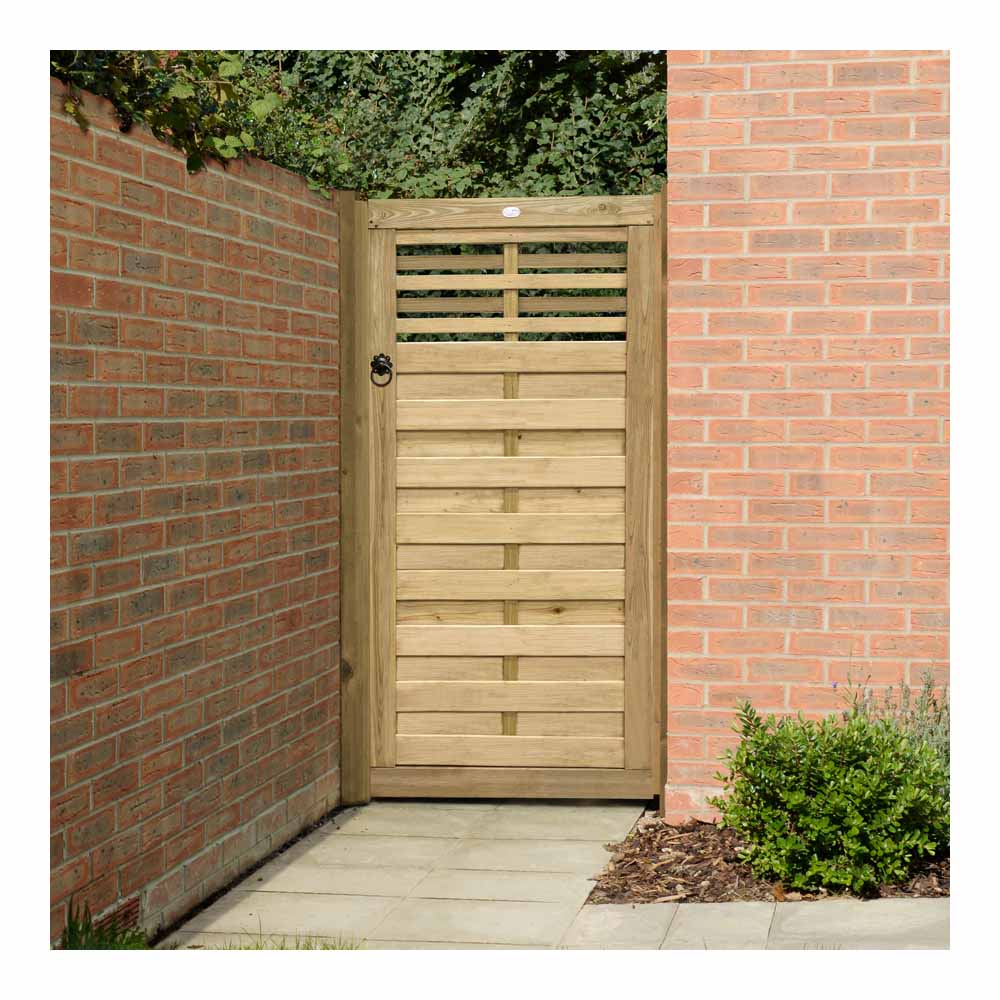 The 6ft Kyoto Gate from Forest has an attractive, high quality finish from the smooth-planed timber it is constructed from. The sturdy mortise and tenon jointed frame increases strength and security. It is ideal to compliment the Kyoto Fence Panel and when used together create a modern contemporary feel that will transform your garden. The Gate has been Pressure Treated to give a 15 year Anti-Rot guarantee. Manufactured from FSC certified timber. Fixings sold separately.