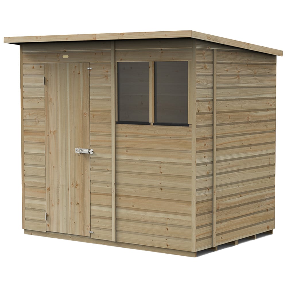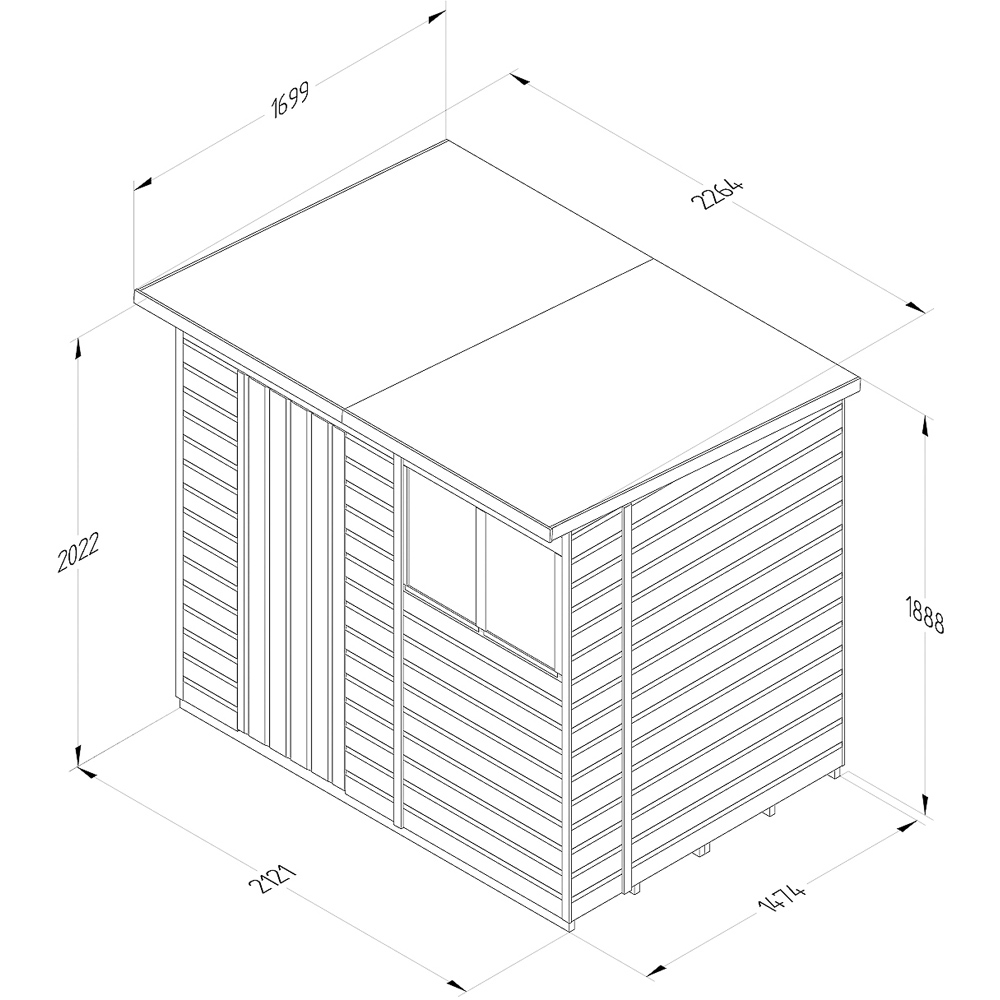 Create a safe storage space for your gardening tools Forest Garden Beckwood 7 x 5ft Single Door 2 Windows Shiplap Pent Shed. This shed is proudly designed and manufactured in Britain, ensuring its durability and quality. It is specifically built to withstand various weather conditions, making it a perfect choice for storing gardening tools, bicycles, fishing equipment, or outdoor gear. It is constructed using robust and interlocking pressure-treated shiplap cladding, ensuring a watertight seal. With 30 percent thicker framing compared to most wooden sheds, this shed is built to last. The pressure treatment applied to the wood provides a 25-year anti-rot guarantee, eliminating the need for annual preservative treatment. Furthermore, this shed features an extra-thick interlocking tongue and groove floor, making it suitable for storing heavier items. The roof is made from hardwearing 8mm solid sheet material, providing durability and protection. Security is a top priority with this shed. The door features a double-Z frame, offering strength and preventing door movement. Hidden hinges and a heavy-duty traditional pad bolt further enhance security, ensuring that your valuable items are safe (padlock not included). Additionally, the door can be fitted with a left or right-hand opening, giving you the flexibility to choose. With its traditional pent roof, this wooden shed will complement any garden beautifully. It comes with a full set of fixings and clear instructions to assist you in achieving a hassle-free assembly process. Note: It is delivered free to most UK addresses through Forest Garden's white glove delivery service, with drop-off in your desired garden location and packaging removal included. Please Note: Orders to the following postal codes may be subject to longer leads than advertised: