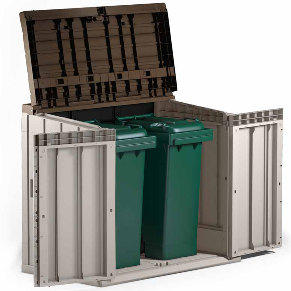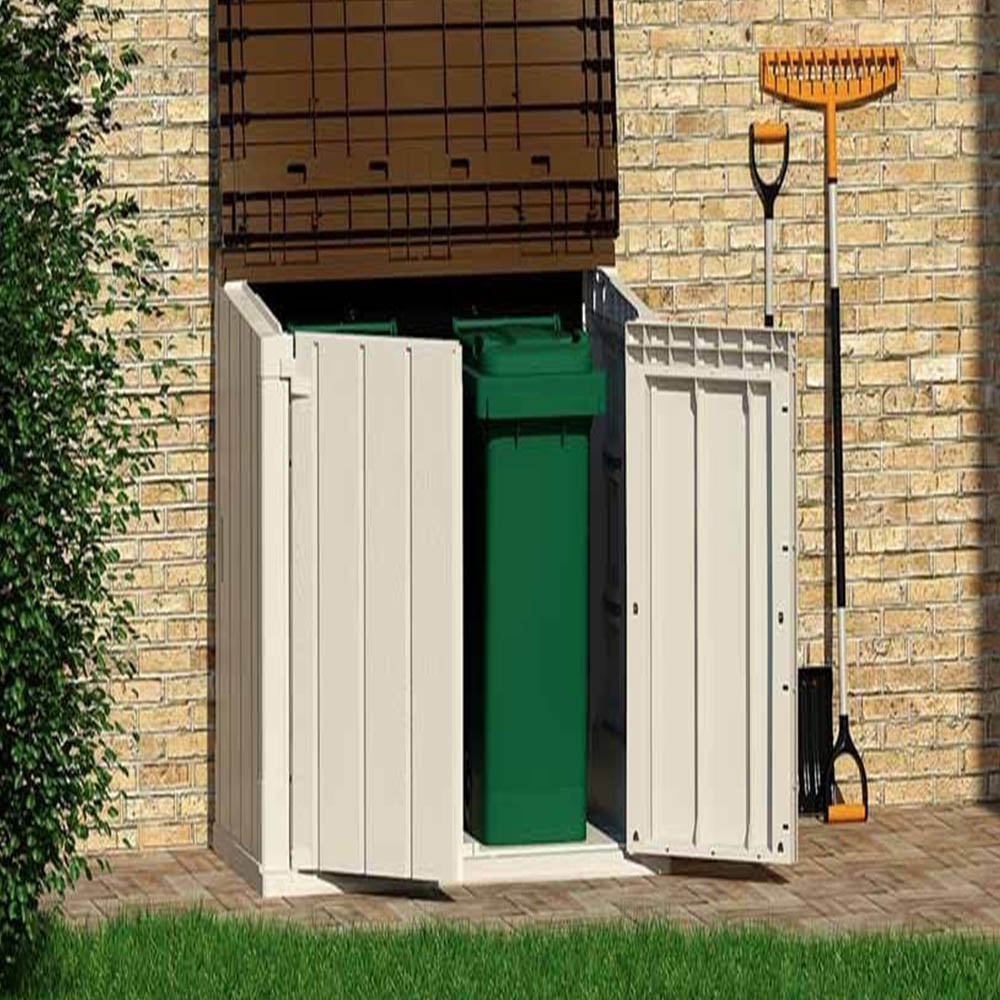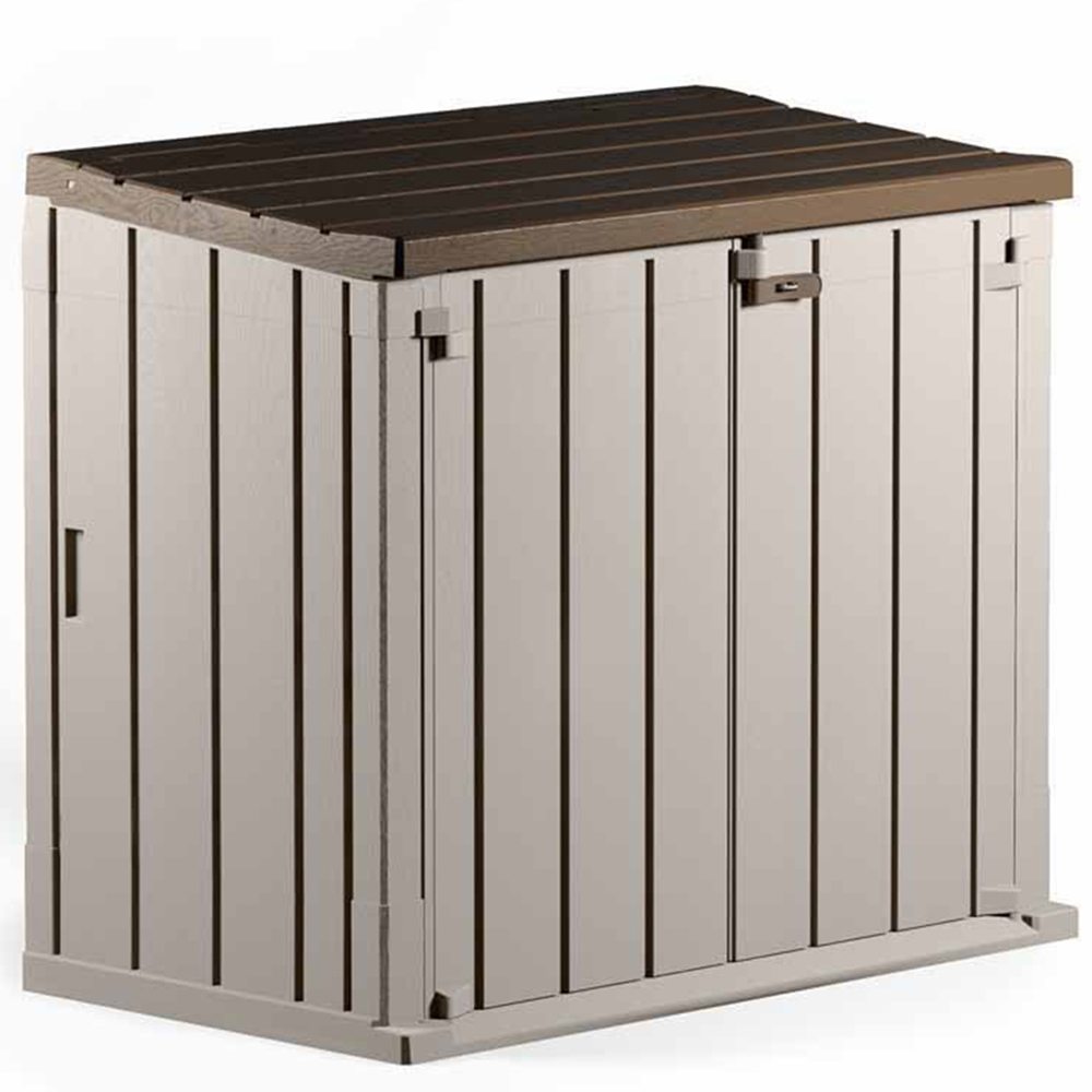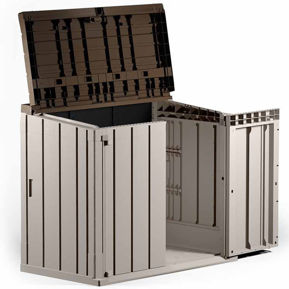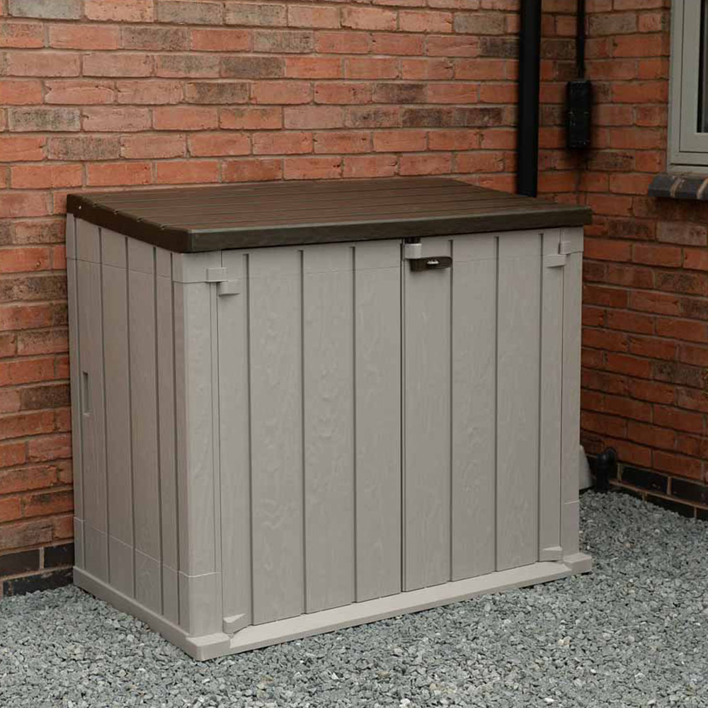 The Large Garden Storage Box is a multi-use storage solution that will accommodate large outdoor items such as lawnmowers, barbeques, garden tools, garden furniture and children's toys. An opening lid and twin opening doors make it easy access to the contents of the shed and to get awkward or heavy products in and out. Slots in the side walls allow for one or two shelves to be inserted against the back wall. For the shelves, timber board should be cut to a length of 124.5cm. Depth should be 14 - 17 cm and thickness 18mm (max 20mm). The shed is also lockable with the use of a padlock so contents can be kept secure. Total capacity is 842 litres. Made from UV resistant polypropylene, the storage shed is also very easy to assemble by one person.
