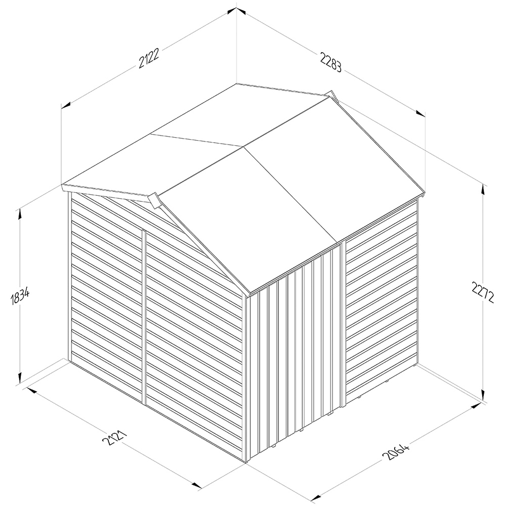 Create a safe storage space for your gardening tools Forest Garden Beckwood 7 x 7ft Double Door Shiplap Reverse Apex Shed. This shed is proudly designed and manufactured in Britain, ensuring its durability and quality. It is specifically built to withstand various weather conditions, making it a perfect choice for storing gardening tools, bicycles, fishing equipment, or outdoor gear. It is constructed using robust and interlocking pressure-treated shiplap cladding, ensuring a watertight seal. With 30 percent thicker framing compared to most wooden sheds, this shed is built to last. The pressure treatment applied to the wood provides a 25-year anti-rot guarantee, eliminating the need for annual preservative treatment. Furthermore, this shed features an extra-thick interlocking tongue and groove floor, making it suitable for storing heavier items. The roof is made from hardwearing 8mm solid sheet material, providing durability and protection. Security is a top priority with this shed. The door features a double-Z frame, offering strength and preventing door movement. Hidden hinges and a heavy-duty traditional pad bolt further enhance security, ensuring that your valuable items are safe (padlock not included). Additionally, the door can be fitted with a left or right-hand opening, giving you the flexibility to choose. With its reverse apex roof, this wooden shed will complement any garden beautifully. It comes with a full set of fixings and clear instructions to assist you in achieving a hassle-free assembly process. Note: It is delivered free to most UK addresses through Forest Garden's white glove delivery service, with drop-off in your desired garden location and packaging removal included. Please Note: Orders to the following postal codes may be subject to longer leads than advertised: