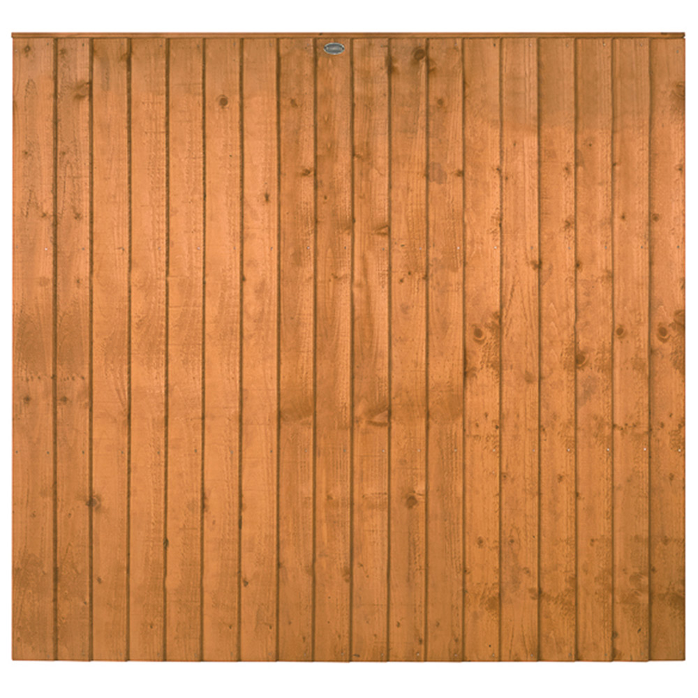 This 5ft, 6inch Closeboard Panel from Forest Garden is a strong, sturdy, secure panel, perfect for privacy and security along garden boundaries. It features thick overlapping square cut 8mm boards, arranged vertically and mounted to a perimeter frame to make an attractive-looking panel. The panel is reinforced with two 45mm central batten on the back and is finished with a profiled panel cap. Manufactured from FSC-certified timber, the panel is dip-treated to give a 10-year anti-rot guarantee, with periodic re-treatment, and has a golden brown finish. Size: 1.83 x 1.68m. Please Note: Orders to the following postal codes may be subject to longer leads than advertised: