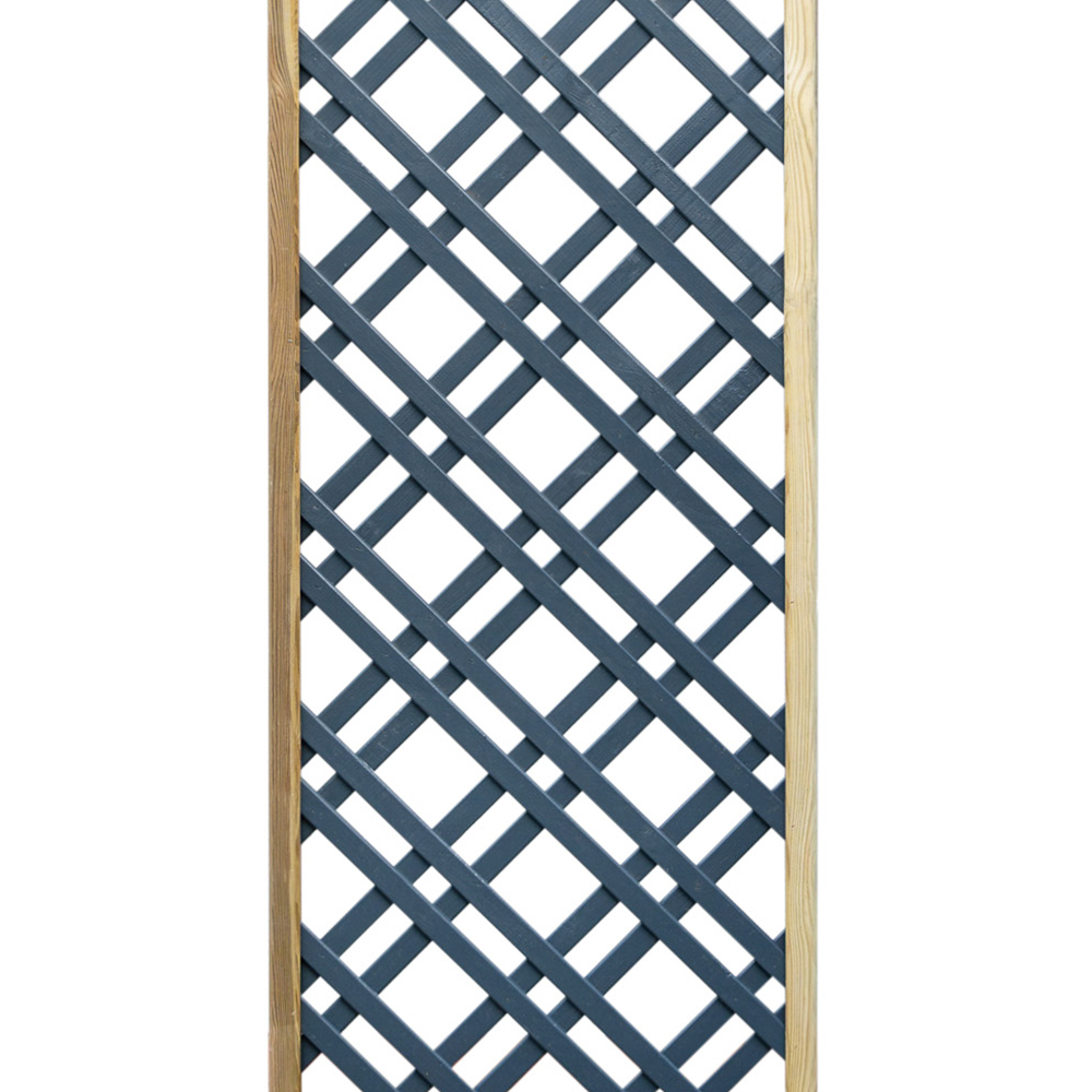 This painted trellis panel creates a striking focal point in any area of your outdoor space. Perfect for wall-mounting as a decorative feature, as a beautiful garden trellis, or for building an elegant privacy screen or partition, this versatile panel brings both style and practicality to your garden. The high-quality 1.8m x 0.3m lattice panel features a diamond pattern and is painted in anthracite for a sleek, modern look. Ideal for screening or supporting climbing plants, this trellis will make a beautiful addition to your garden as it fills with greenery over time. Crafted with a pressure-treated, natural-looking frame and a grey anthracite lattice, this panel is designed to last, backed by a 15-year Anti-Rot Guarantee. Manufactured from PEFC certified timber, it’s available in widths of 0.3m, 0.6m, and 0.9m to suit various spaces. Please Note: Orders to the following postal codes may be subject to longer leads than advertised: