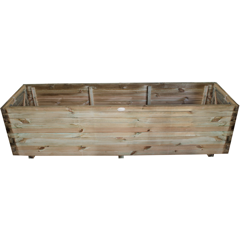 The Lomello Planter from Forest has a sleek design and will look great on a patio or decking area. Create a large floral display that will suit your garden with this stylish planter. At 180cms wide its large size means there's plenty of room for all your plants. The timber used to make this planter has been Pressure Treated to give it a manufacturer’s guarantee of 15 years against rot and fungal decay. The floor bearers keep the planter off the ground to help prevent the base from getting damp. The trough holds an impressive 404L of compost, so you can fill it with all of your favourite plants, or maybe even turn it into a kitchen garden with herbs and vegetables. Supplied flat-packed with instructions and fixings. If using to grow food produce we recommend lining the bed/planter with a membrane before adding the soil. Please Note: Orders to the following postal codes may be subject to longer leads than advertised: