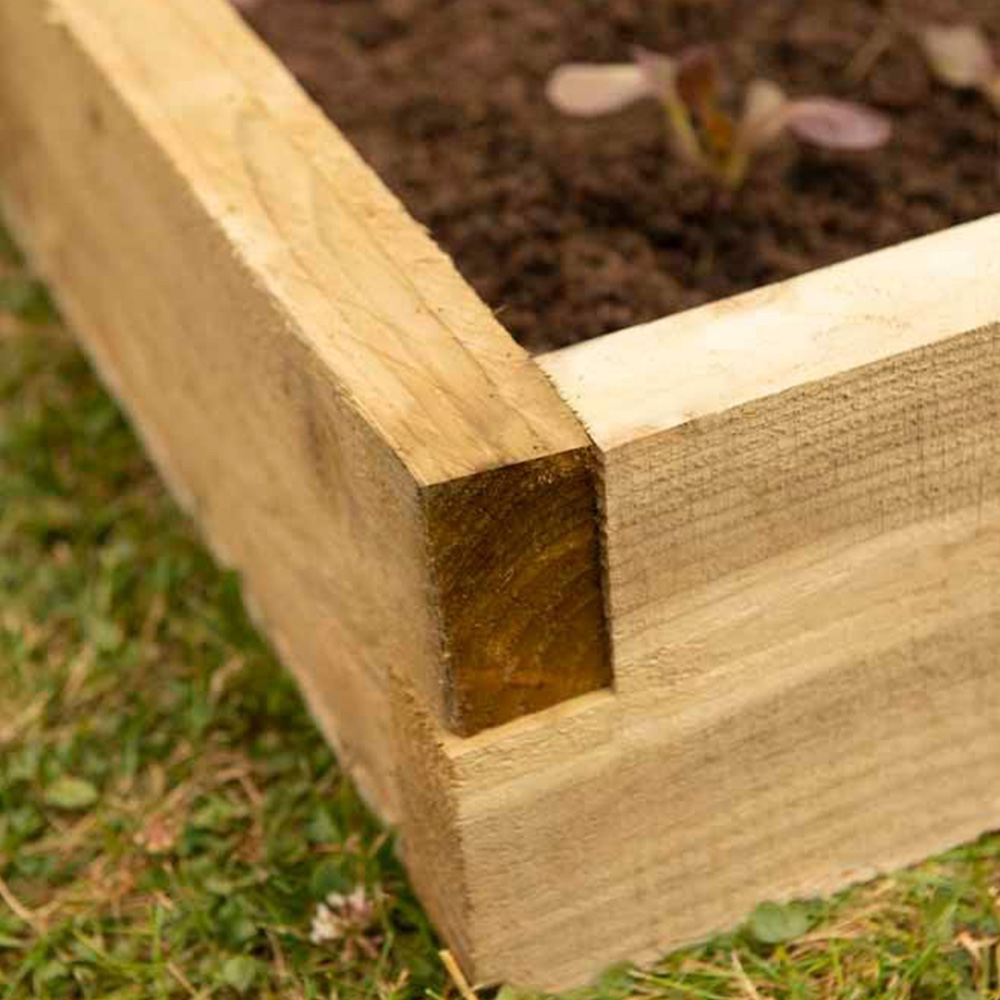 Create your own compact kitchen garden with this Caledonian Square Raised Bed from Forest. The square design gives a more traditional look to the raised-bed style. It offers a quick and easy way of establishing a useful bed for growing a variety of vegetables or other plants in a relatively small space. The raised bed is made using strong 40mm thick timbers that are 140mm deep and have been conveniently notched at the ends so they can be easily assembled with neat and attractive half-lap joints at each corner. All that is required to put the bed together is 4 screws, one in each corner. The screws are supplied with the bed, along with instructions. The wood is pressure treated to protect against rot and comes with a 15-year guarantee. It offers a great option for a compact kitchen garden, where you can grow fresh vegetables and herbs to use in your cooking. Size: W 90 x L 90cm. Note: If using to grow food products we recommend lining the bed/planter with a membrane before adding the soil. Please Note: Orders to the following postal codes may be subject to longer leads than advertised: