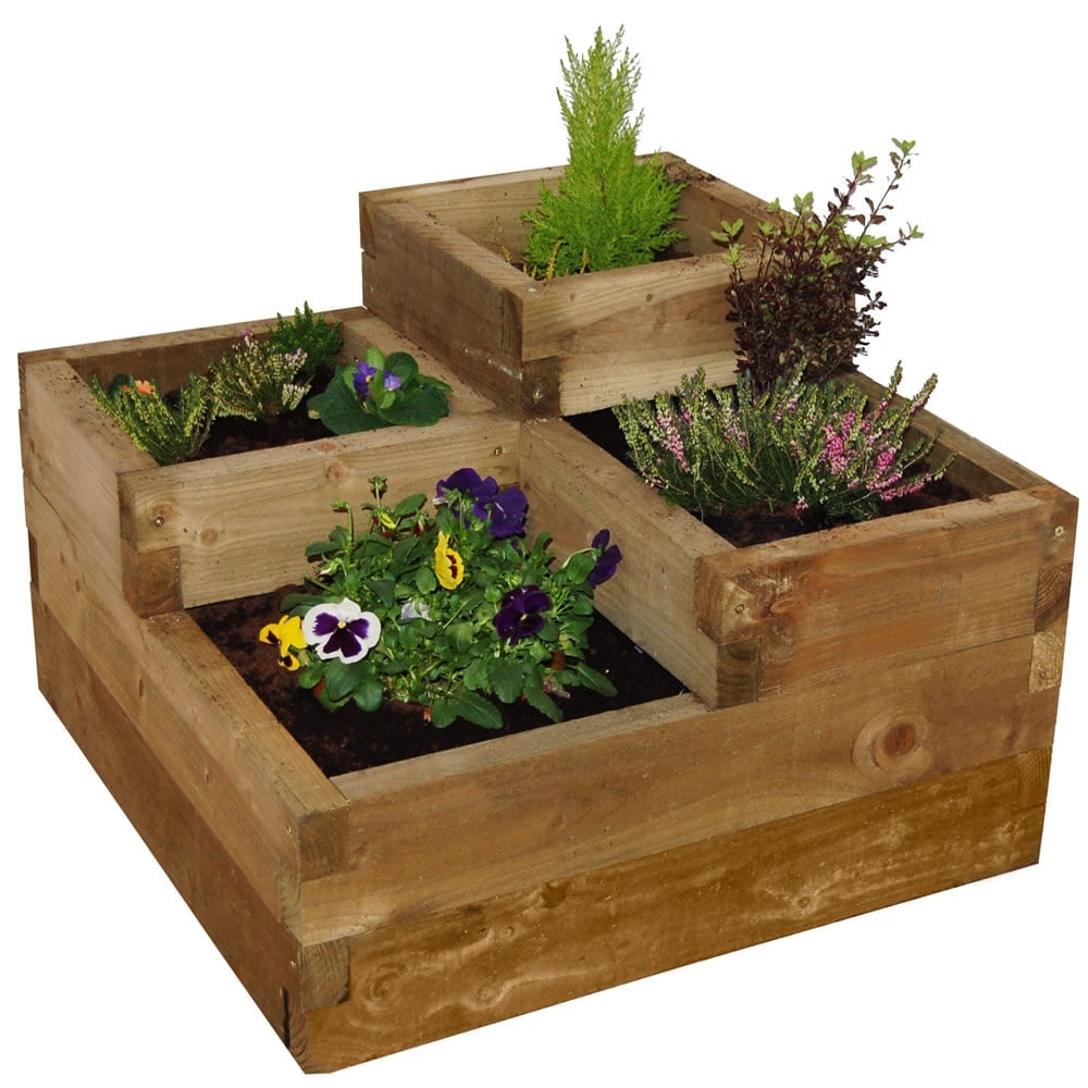 Create stunning displays with a Caledonian three-tiered raised bed that has four individual planting sections making it perfect for growing vegetables, herbs or flowers. This compact design is ideal for smaller gardens featuring a tiered design with separate planting sections for your gardening needs. Pre notched timber components for quick and easy assembly. Pressure treated for longer life eliminates the need for annual retreatment, 15-year anti-rot guarantee. It is manufactured from FSC certified timber from sustainable sources. Please Note: Orders to the following postal codes may be subject to longer leads than advertised:
