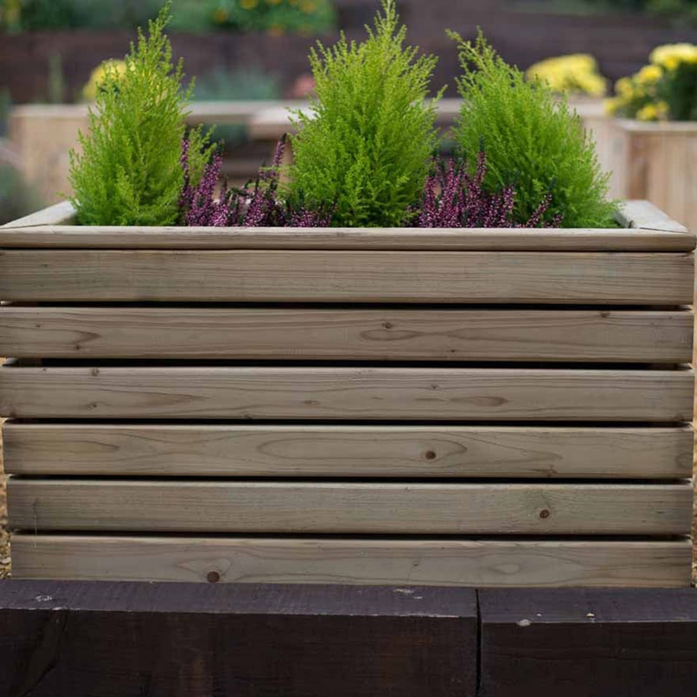 Our contemporary style Linear Planters are ideally sized for a variety of decorative shrubs such as box, standards, miniature firs and will look beautiful when filled with flowering plants. Choose a planter – or more than one – that will suit your garden size and style from the Linear range: square, double, long and tall. The planters have a modern look, with strong horizontal lines and natural timber colouring, they're sure to add interest and structure to any garden. This Linear Double Planter will add a focal point to a patio, terrace or balcony. For a superior finish, the timber used is smooth-planed and Pressure Treated with a preservative to protect it against rot. The planter is kept off the ground by Pressure Treated battens. The planters each come with a porous lining to keep soil and moisture in and ensure your plants thrive. Delivered flat packed for easy self-assembly.