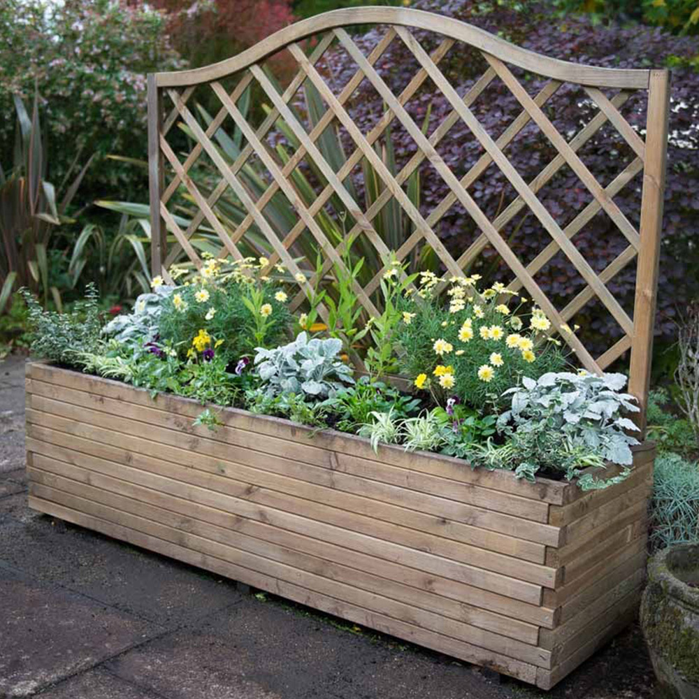 Combine practicality with style with the large Venice Planter from Forest. This planter has a beautiful integrated dome top diamond trellis that is not only aesthetically pleasing but will support the growth of climbing plants. All timber used to manufacture this product has been Pressure Treated to give it a guarantee against rot and fungal decay for 15 years. The trough can hold an impressive 340L of compost, so there is plenty of room for a multitude of plants, flowers or even vegetables. Delivered to you flat packed with easy to follow step-by-step instructions and all the fixings you need for a simple build.