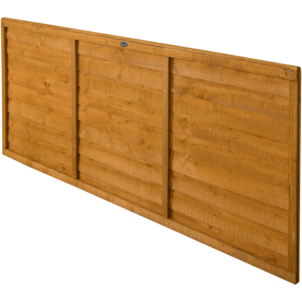 New and improved straighter edge design, this 6ft 5in overlap fence panel is ideal for use in your garden to create privacy and security along boundaries. An alternative to traditional overlap panels that have 'waney-edged' boards, this version features straight-cut boards that give it cleaner, more contemporary lines. This golden brown panel will look good in any garden. It is strengthened with the use of four vertical battens on each side. The 44mm frame adds additional strength and rigidity. Please Note: Orders to the following postal codes may be subject to longer leads than advertised: