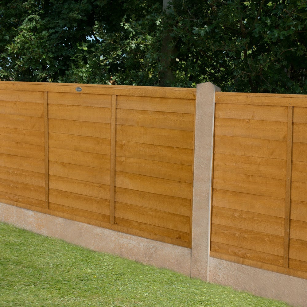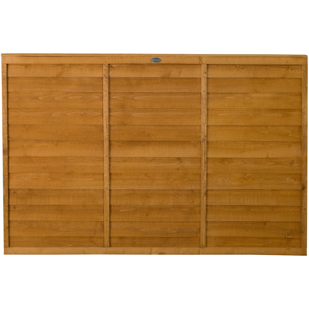 New and improved straighter edge design, this 6ft 5in overlap fence panel is ideal for use in your garden to create privacy and security along boundaries. An alternative to traditional overlap panels that have 'waney-edged' boards, this version features straight-cut boards that give it cleaner, more contemporary lines. This golden brown panel will look good in any garden. It is strengthened with the use of four vertical battens on each side. The 44mm frame adds additional strength and rigidity. Please Note: Orders to the following postal codes may be subject to longer leads than advertised: