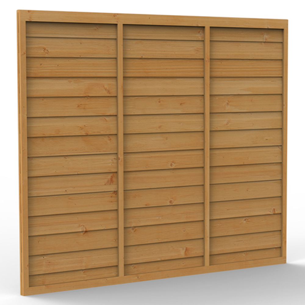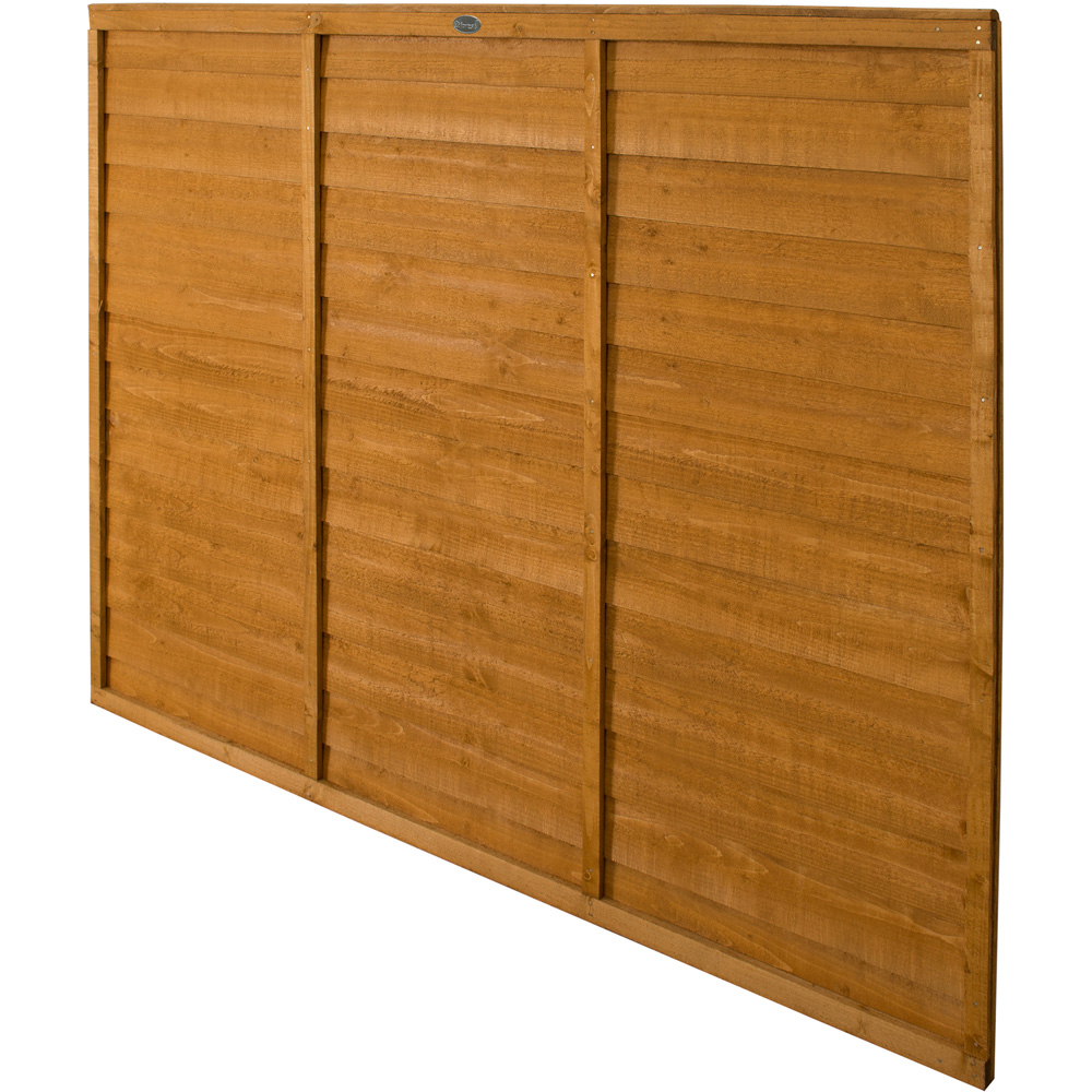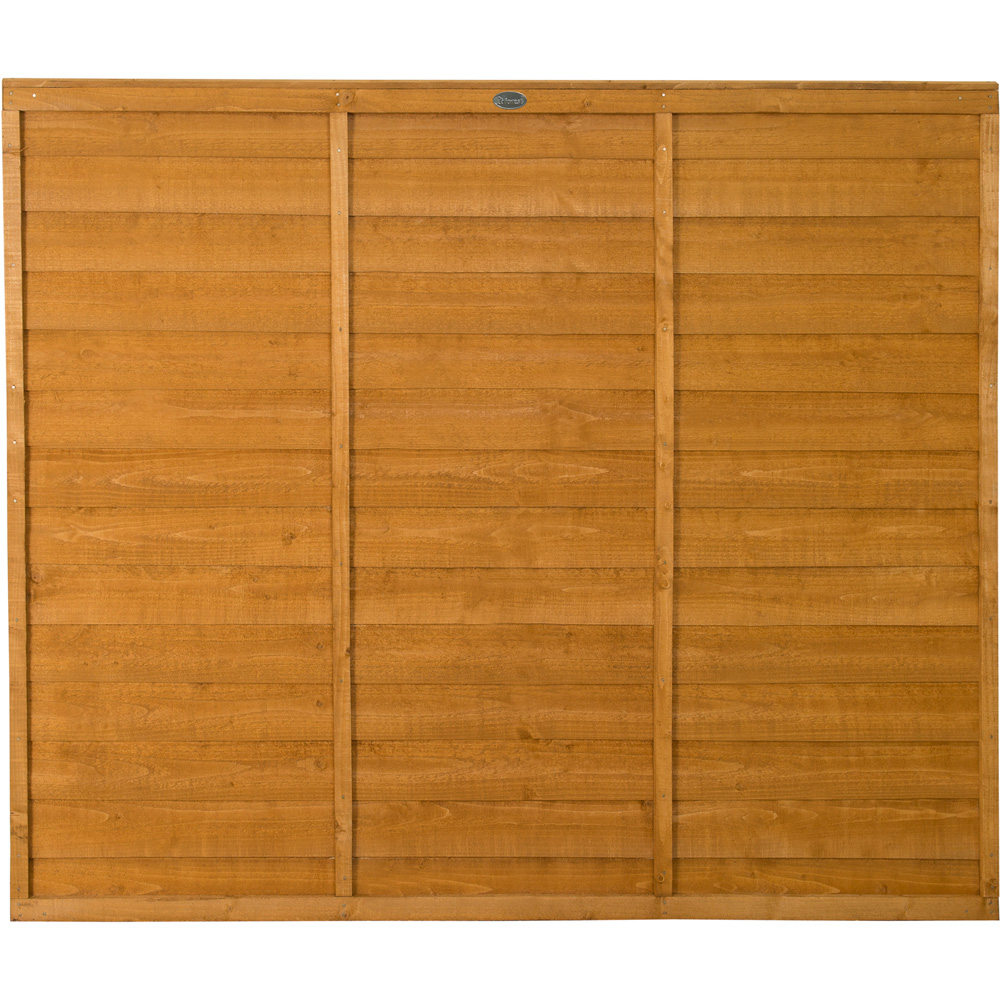 New and improved straighter edge design, this 6ft 5in overlap fence panel is ideal for use in your garden to create privacy and security along boundaries. An alternative to traditional overlap panels that have 'waney-edged' boards, this version features straight-cut boards that give it cleaner, more contemporary lines. This golden brown panel will look good in any garden. It is strengthened with the use of four vertical battens on each side. The 44mm frame adds additional strength and rigidity. Please Note: Orders to the following postal codes may be subject to longer leads than advertised:
