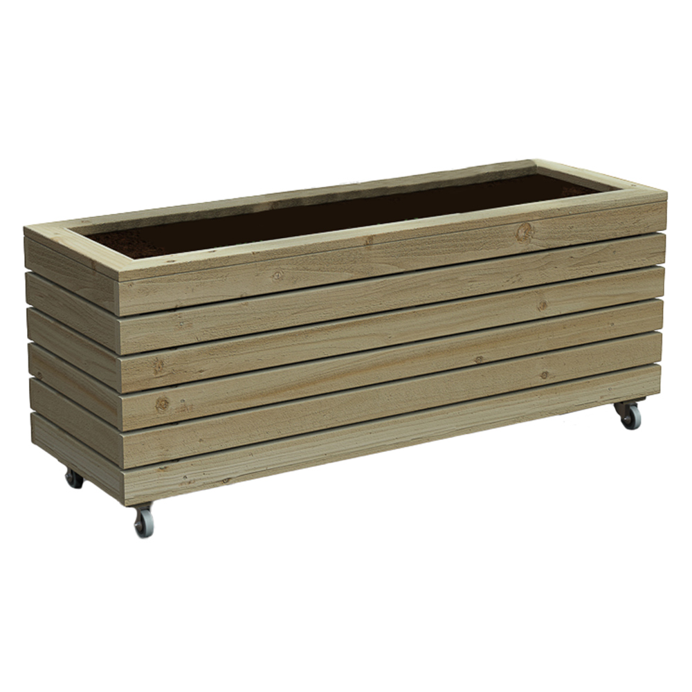 Make a talking point in your garden with this Forest Garden Wooden Long Linear Planter with Wheels. This planter is sure to add interest to any garden with strong horizontal lines and natural timber colouring. Also, it can hold up to 158 litres of compost to grow sufficient plants and vegetables. Apart from this, it is conveniently designed with wheels for easy portability. Perfect for adding a focal point to a patio, terrace or balcony. Please Note: Orders to the following postal codes may be subject to longer leads than advertised: