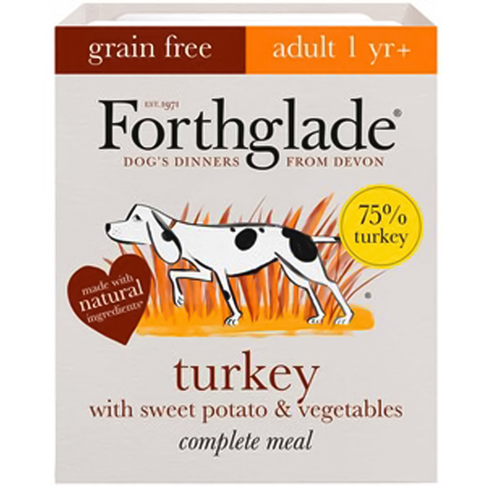 Provide your growing adult dog with a nutritious meal using this Forthglade Turkey Sweet Potato and Vegetable Grain Free Dog Food 395g. This package features a grain-free formula made up of 75% turkey along with sweet potato and vegetables, created from natural ingredients without any fillers or junk. The wholesome ingredients ensure it’s healthy for your beloved companion while offering a flavour that will keep their tail wagging in delight every time it's served. An excellent choice for an adult dog, this dog food will deliver all the vital nutrients needed to keep your pet healthy and energetic.