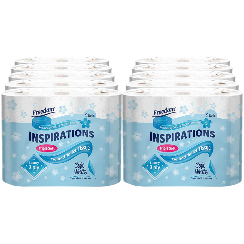 Freedom Inspirations Quilted Soft White 3 Ply Toilet Paper Roll, 90 Rolls Freedom toilet papers are designed to be used anytime where cleanliness and comfort are a priority. It is often the simple things that make life a whole lot easier. In our everyday lives, comfort and ease combined with responsible choices can make a big difference to our quality of life. It has the balance of softness and strength to leave you and your family feeling fresh and clean. Features: Soft, strong and absorbent. 3 layers of quilted softness in every sheet. Remove odour-causing bacteria. Hypoallergenic and safe toilet paper that won't irritate sensitive skin. Flush-able wipes for the ultimate clean and fresh feeling. Ideal for everyday use. 90 Rolls (10 Packs of 9 Rolls) Specifications: Brand: Freedom Toilet Paper Ply : 3 Ply Sheets Per Roll: 160 Freedom Rhino Jumbo Luxury Kitchen Towel Rolls, Super Strong & Absorbent 24 Rolls The 2-Ply Rhino kitchen roll offers super absorbency thanks to its unique Liqui-Sorb technology. The ideal choice for a wide variety of everyday wiping jobs and great at keeping your kitchen clean. Perfect for kitchen jobs such as large spills, grime and oil, and day-to-day mess. Super absorbent with a unique embossed pattern. This role offers great value and performance making it the popular choice for a wide variety of tasks domestically and commercially. Features: 2-ply super absorbent kitchen roll Food contact safe Super strong and absorbent Soft and strong paper that will soak up liquids Perfect for keeping surfaces clean in the kitchen Specifications: Number of Ply: 2 Ply Number of Sheets: 200 Sheets Bundle Includes: 90 Rolls Freedom Inspirations Quilted Soft White 3 Ply Toilet Paper & 24 Rolls of Freedom Jumbo Kitchen Towel Rolls.