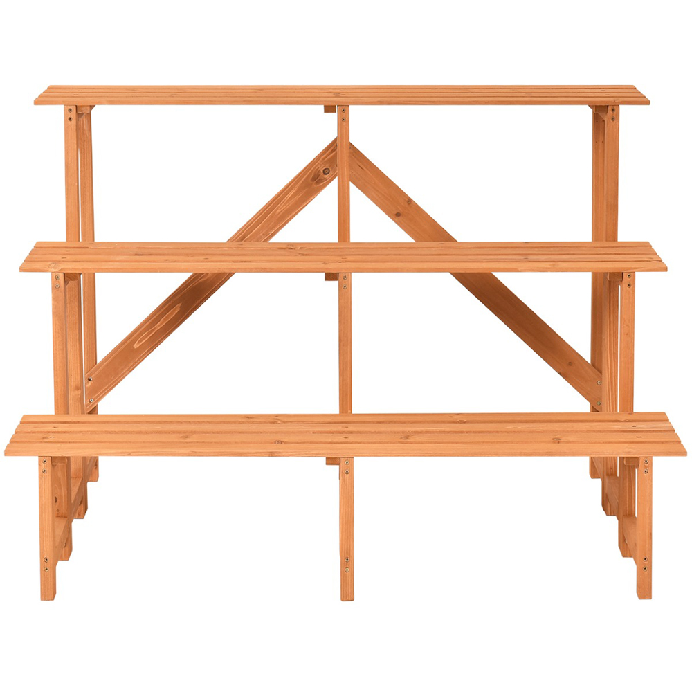 Enhance your space with the charming Costway 3 Tier Wooden Corner Plant Rack. It is designed from solid fir, making it sturdy enough to support a variety of pots. Its compact design maximises sunlight exposure for your plants while complementing both indoor and outdoor settings. Ideal for creating a natural feel in your space, it also serves as a functional shelf for decor items.