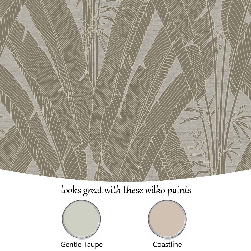 Make a timeless addition to your home decor with Fresco Leaves Beige and Gold Wallpaper. Featuring a traditional neutral colour palette for a classy and elegant feel - these tropical style leaves keep it contemporary and up-to-date. With CO2-neutral business - this sustainable paper has water-based inks and is Phthalate free. This smooth finish wallpaper is suitable for bedrooms, living rooms and hallways. Finish: Smooth. Application: Paste the paper. Design match: Straight. Design repeat: 64cm. Roll length: 10m. Width: 52cm.