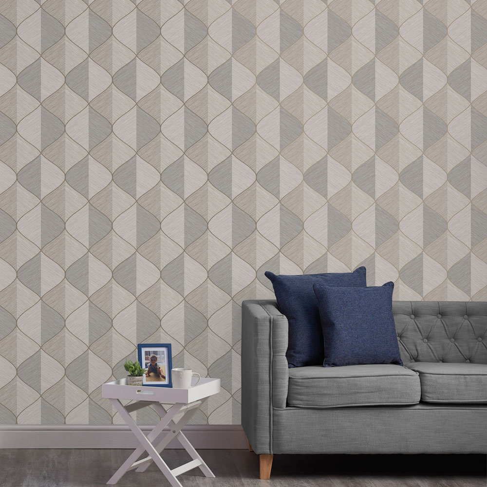 Create a welcoming ambience in your home with Fresco Ogee Natural Texture Wallpaper. This wallpaper has a beautiful geometric design, featuring curved lines with a parquet style running through the ogee shape. The ribboned geometric line is in pale gold creating a touch of luxury. Application: Paste the paper. Design match: Straight. Design repeat: 53cm. Roll length: 10m. Width: 52cm.