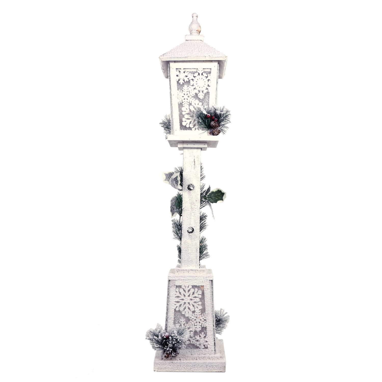 The Snowy Wood Lantern is a beautifully festive and attractive addition to your Christmas decor. The lantern is crafted from white-toned wood and accented with snowflake cutouts to create a whimsical look. This charming Christmas ornament features LEDs to make your space feel warm and cosy, and is finished with faux foliage to give the lantern a rustic edge. It's the perfect piece for your Christmas home.