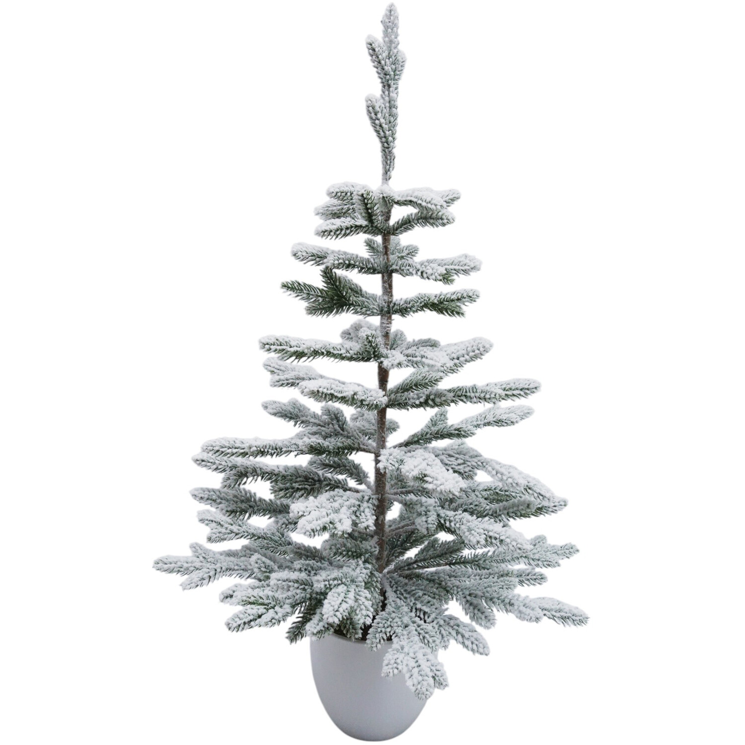 Uplift your holiday decor with this Frosted Potted Tree. This stunning tree features life-like branches with a frost finish bringing a festive, snow-kissed look to any space. Housed in a stylish pot, it makes a perfect seasonal display in and around your home. Reusable, this tree is ideal for creating a cosy atmosphere year after year.