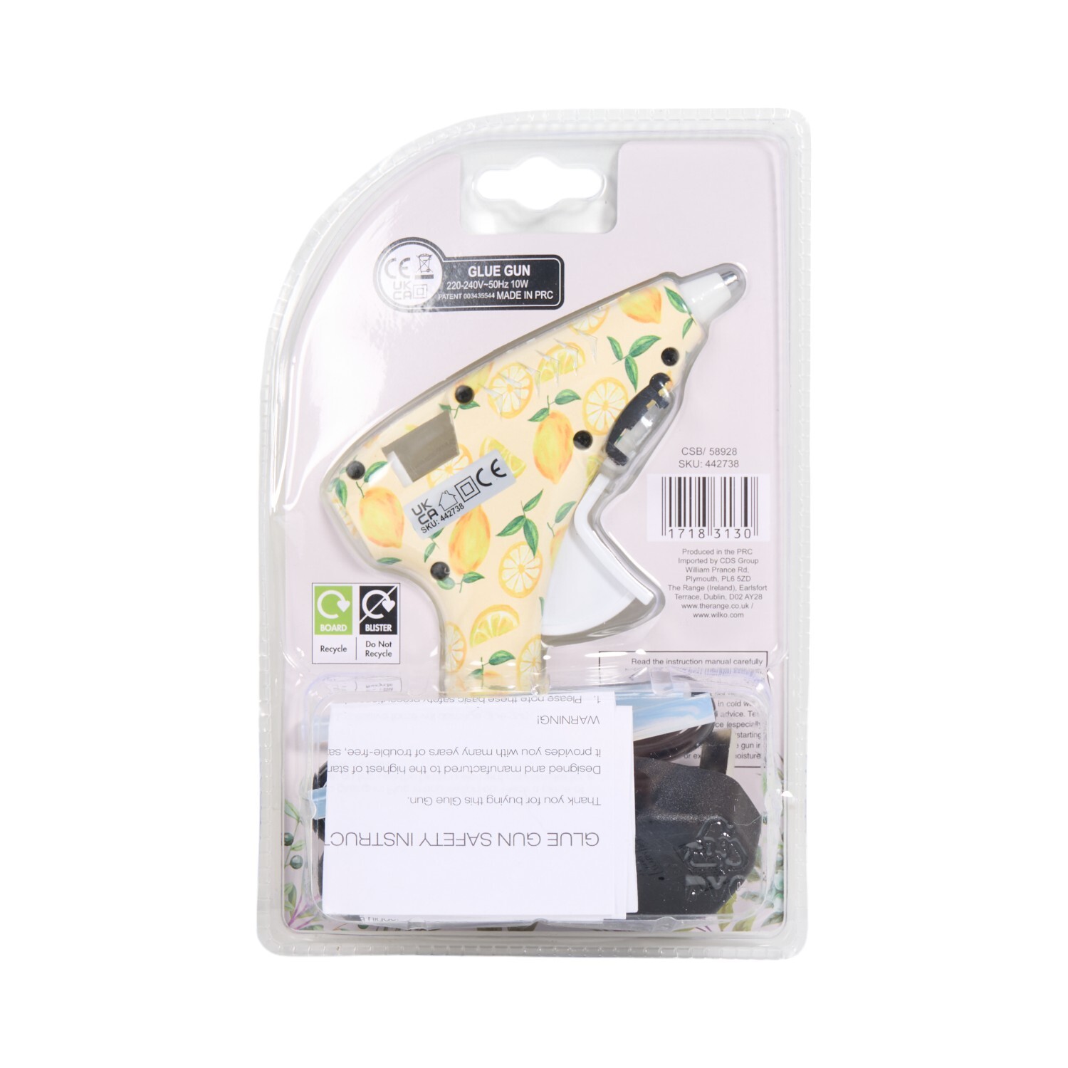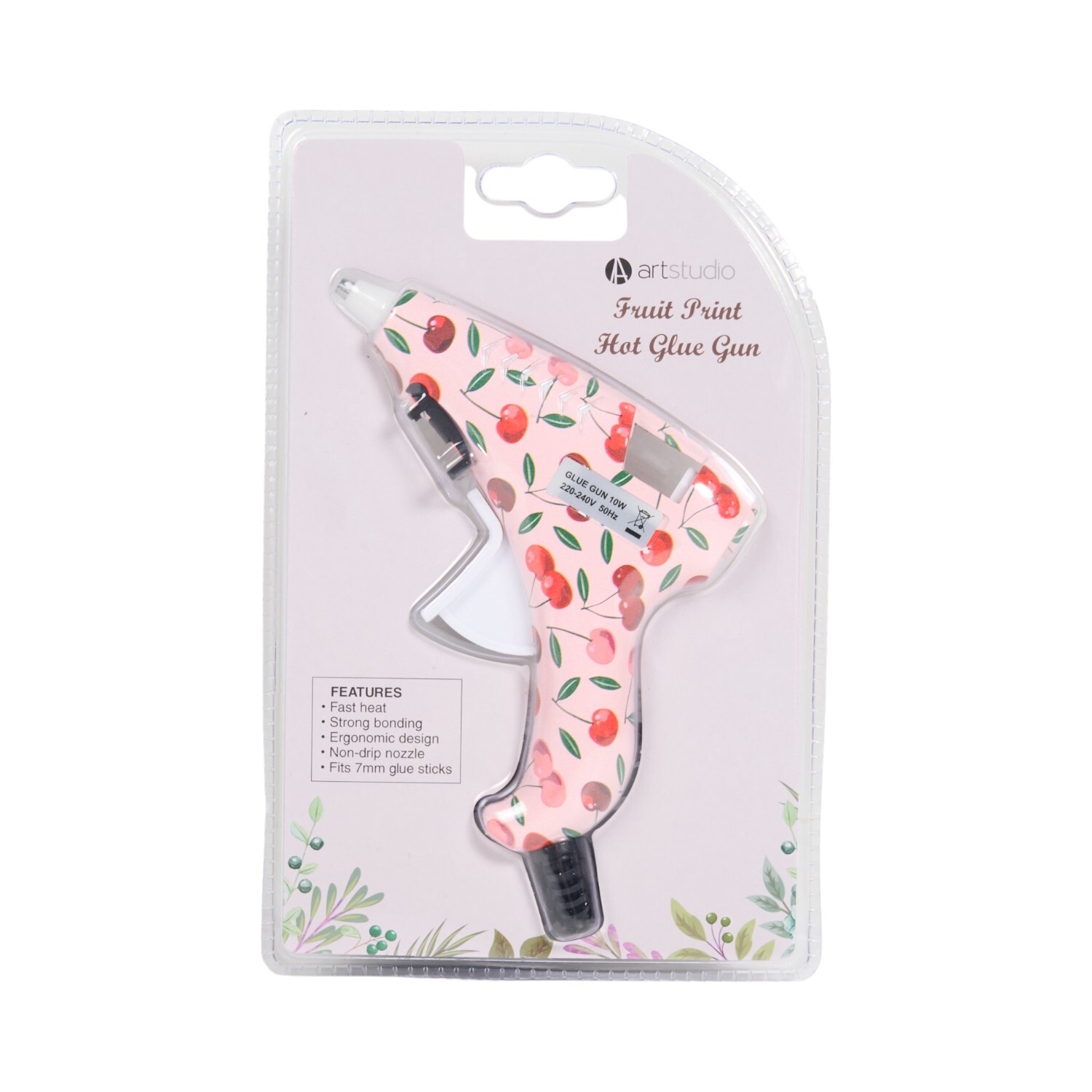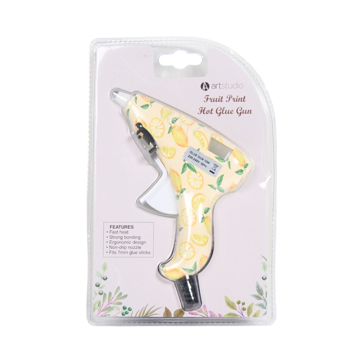 Get a practical companion for all crafting projects with the Fruit Print Hot Glue Gun. Available in assorted designs, this glue gun features a bright fruit pattern to add a playful touch to your crafting sessions. Ergonomically designed with a non-drip nozzle, it heats up quickly and provides a strong bond. Whether you're scrapbooking, decorating artificial flowers, or repairing broken decor pieces, this glue gun is perfect for a variety of projects.