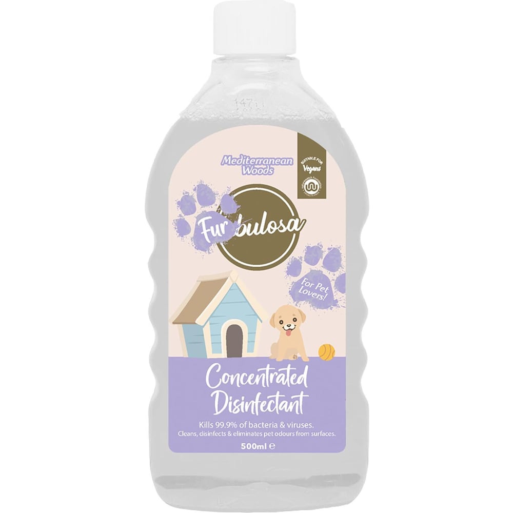 Clean the surfaces in your home with this Furbulosa Pet Concentrated Disinfectant 500ml. Perfect for all sorts of surfaces, this disinfectant cleans, kills bacteria, eliminates pet odours and leaves behind the fresh Mediterranean Woods fragrance.