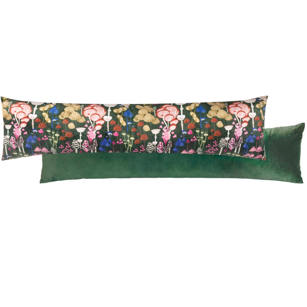 Elevate your home decor with this furn Amanita Green Mushroom Velvet Draught Excluder. Featuring a hand-painted printed colourful mushroom design, this excluder makes a super-cool addition to your furniture. Also, it comes with a plain reverse and hidden zip. Plus, the cushion is super soft yet durable for reliable use.