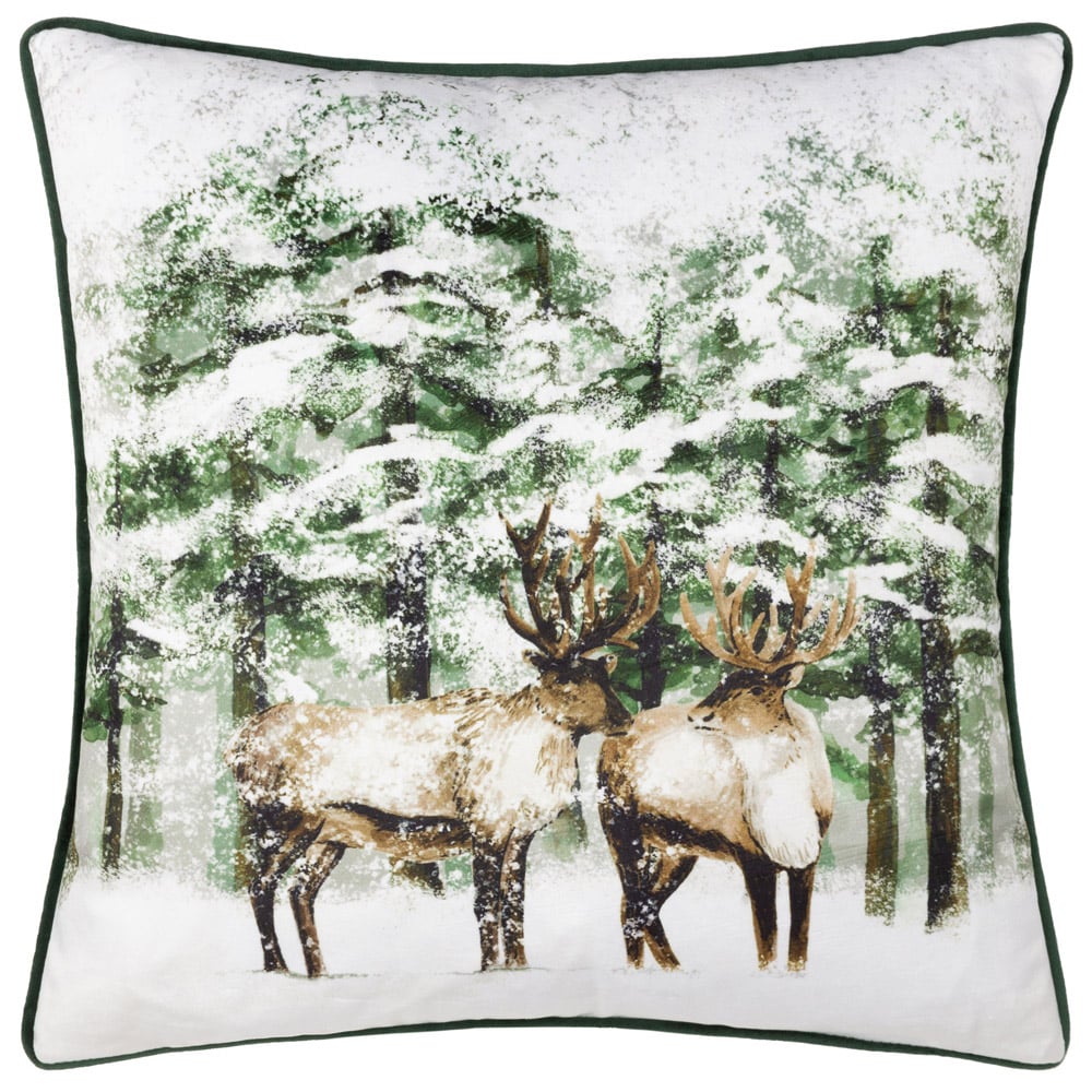 furn. Classic Green Reindeer Velvet Piped Cushion