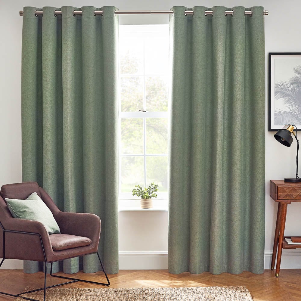 Redefine sophistication and add a touch of luxury to your homes with this furn Dawn Eucalyptus Thermal Blackout Eyelet Curtains. In modern fresh tones, this eyelet curtain provides functionality and effectiveness for your indoors. Its soft-textured, temperature-regulating marl effect fabric keeps out the light and ensures your home stays cool in summer and warm in winter. Also, stylish and classy, the curtain is sure to blend well with most decor styles. Sizes: 168 x 183cm.