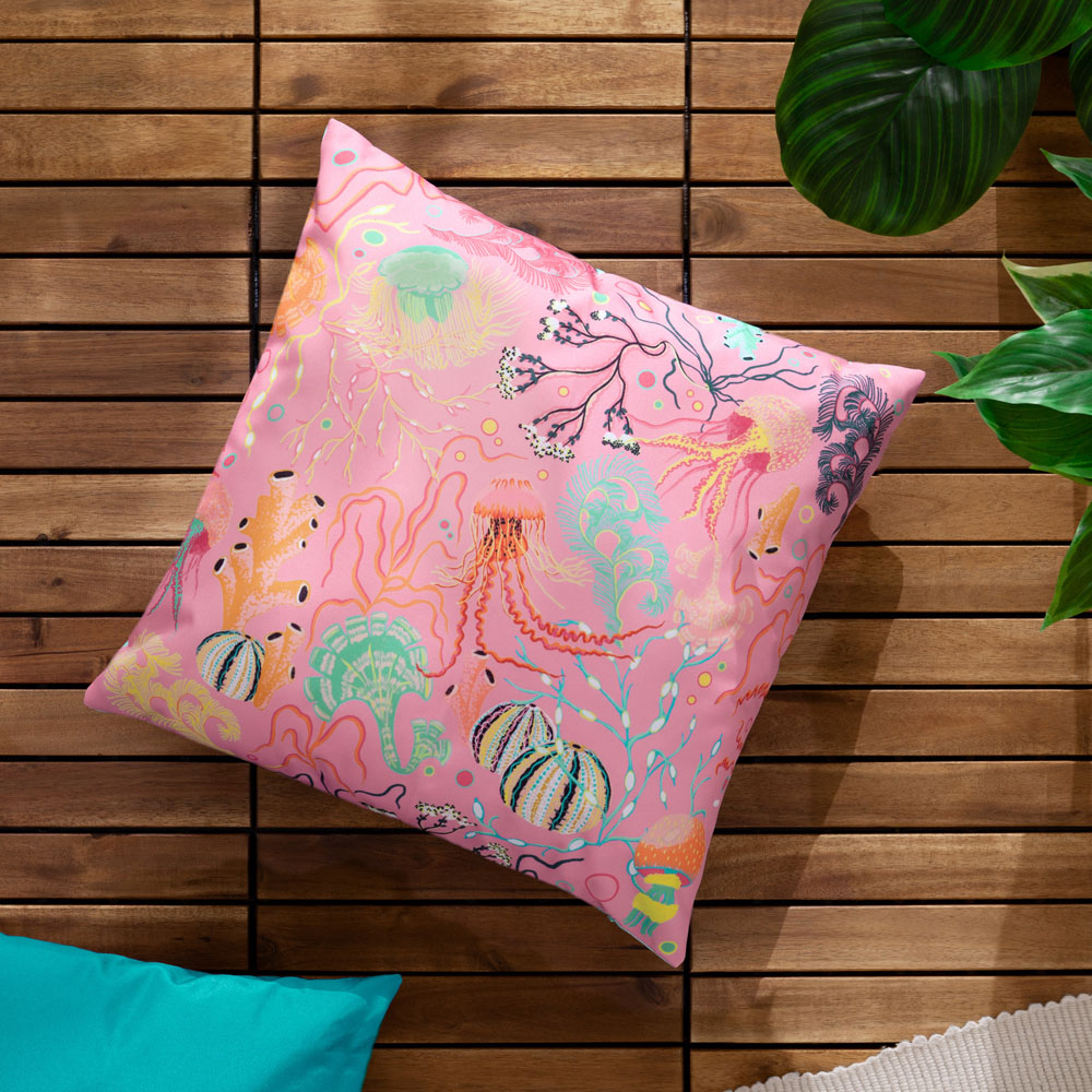 furn. Pink Reef Printed Polyester Filled Outdoor Cushion 45 x 45cm