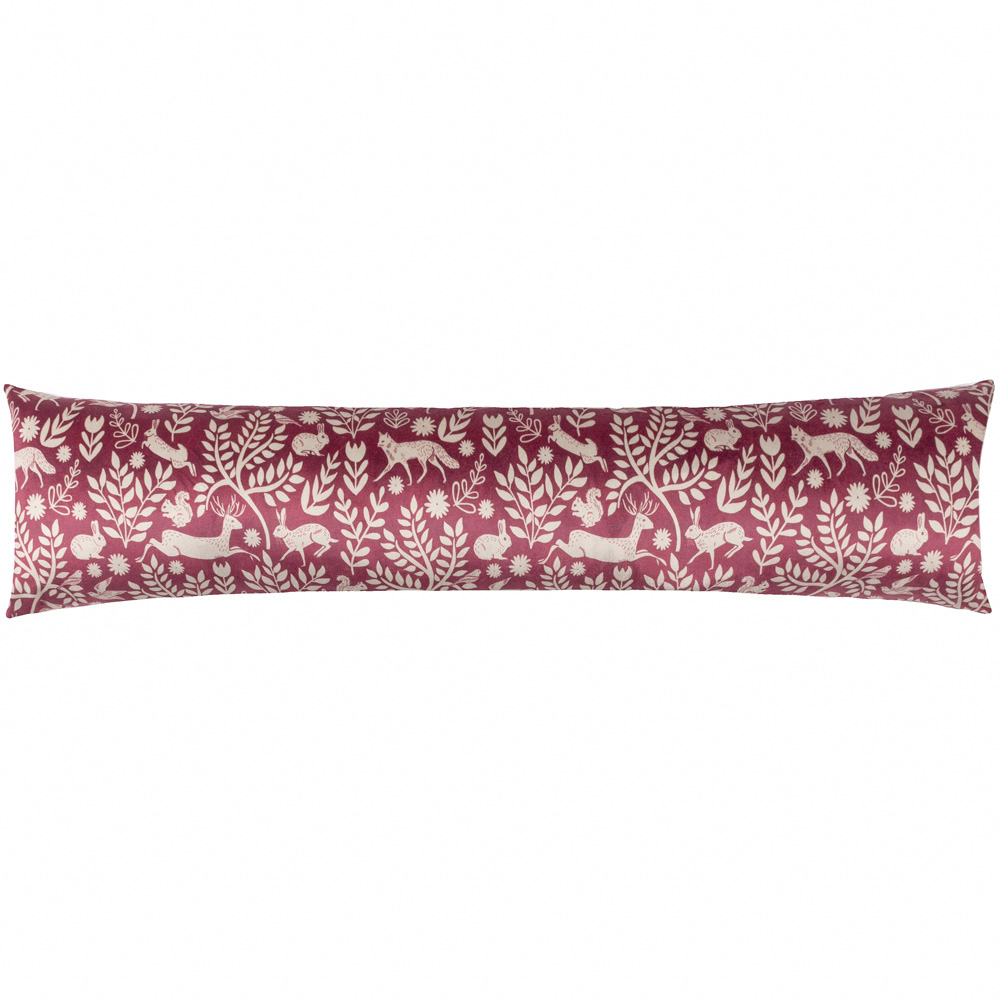 Take a trip to the Scandinavian woodland with this furn. Skandi Berry Woodland Velvet Draught Excluder. Features an intricate design of woodland animals, from hares to foxes, intertwined with branches in a deep berry tone. This quirky design is complemented with a plain velvet dye reverse and hidden zip. Made from 100% polyester, this cushion is an ideal finishing touch to any trending home interior.
