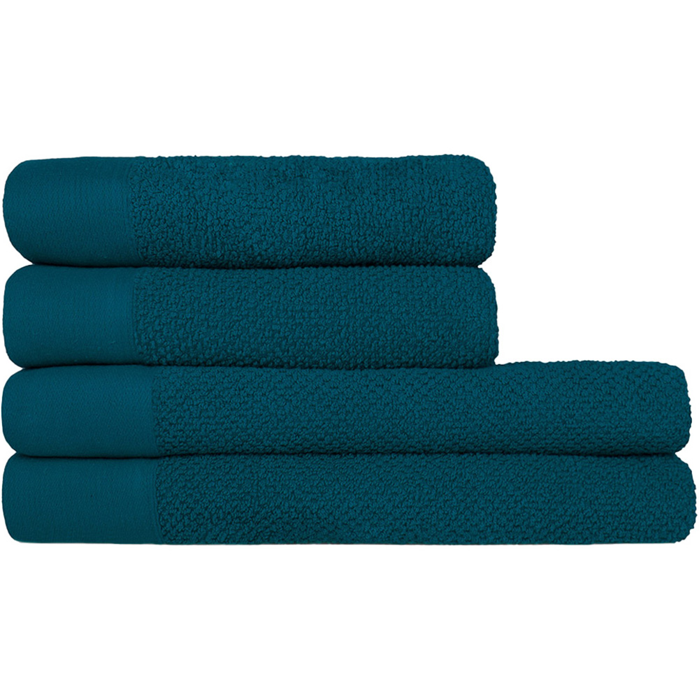 Accessorise your bathroom with this simplistic yet chic furn. Hand and Bath Towels Set. It consists of two hand towels and two bath towels, each featuring a textured finish in a solid blue colour. Made from 100% cotton, this design features an Oxford panel trim and is also quick-drying and super-absorbent. Certified by OEKO-TEX for being sustainably made, each towel has a generous 500gsm thickness for a plump and fluffy feel as you dry! Dimensions: Hand Towels - 50 x 90cm and Bath Towels - 70 x 125cm.