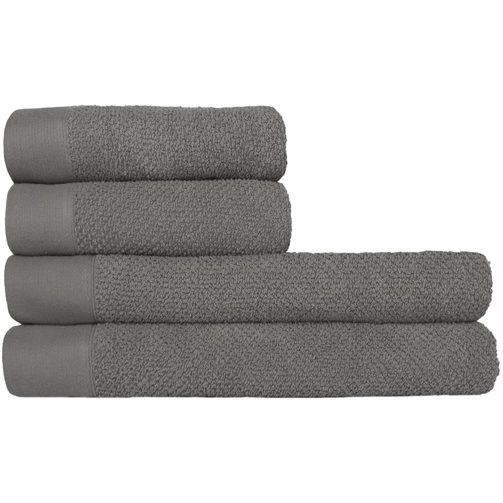 Accessorise your bathroom with this simplistic yet chic furn. Hand Towels and Bath Sheets Set. It consists of two hand towels and two bath sheets, each featuring a textured finish in a solid cool grey colour. Made from 100% cotton, this design features an Oxford panel trim and is also quick-drying and super-absorbent. Certified by OEKO-TEX for being sustainably made, each towel has a generous 500gsm thickness for a plump and fluffy feel as you dry! Dimensions: Hand Towels - 50 x 90cm and Bath Sheets - 90 x 150cm.