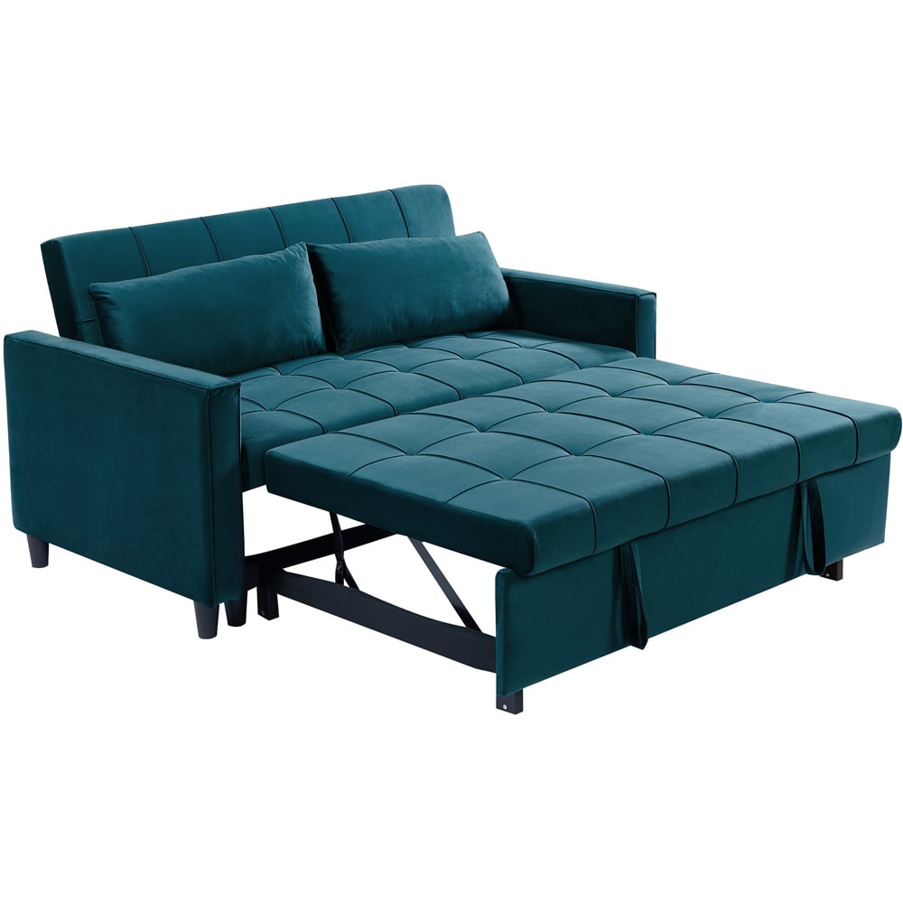 Sit upright, lie back and relax, and even comfortably sleep on it. This Convertible 3-in-1 Sofa Bed easily transforms into a loveseat, lounger, or bed to meet your needs. The pillows add a touch of comfort to your seating experience. This multi-functional loveseat is built with quality velvet fabrics and a solid wood frame, you can sit back, relax, and enjoy any activity with friends and family.