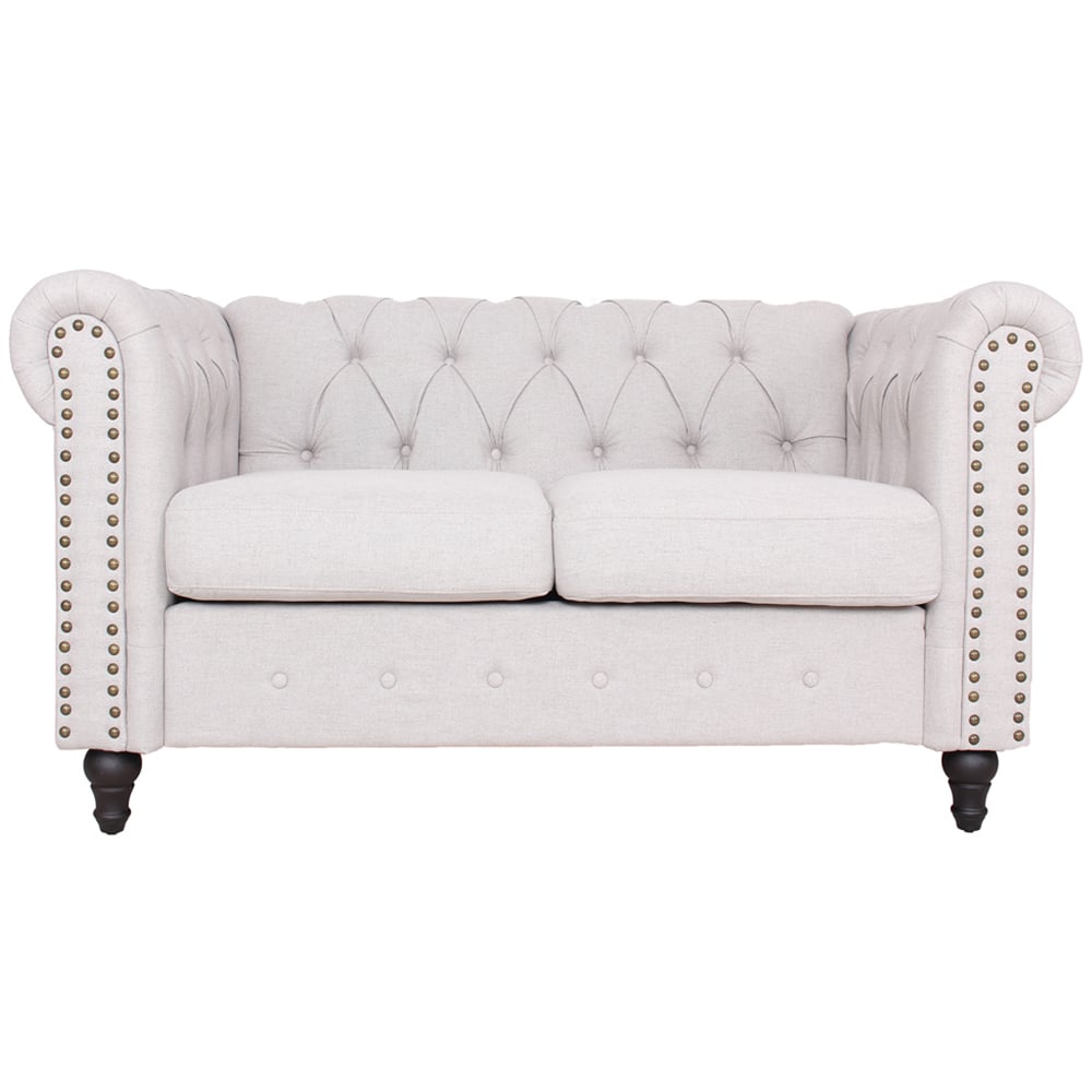 Furniture One 2 Seater Light Grey Nailhead Trim Sofa