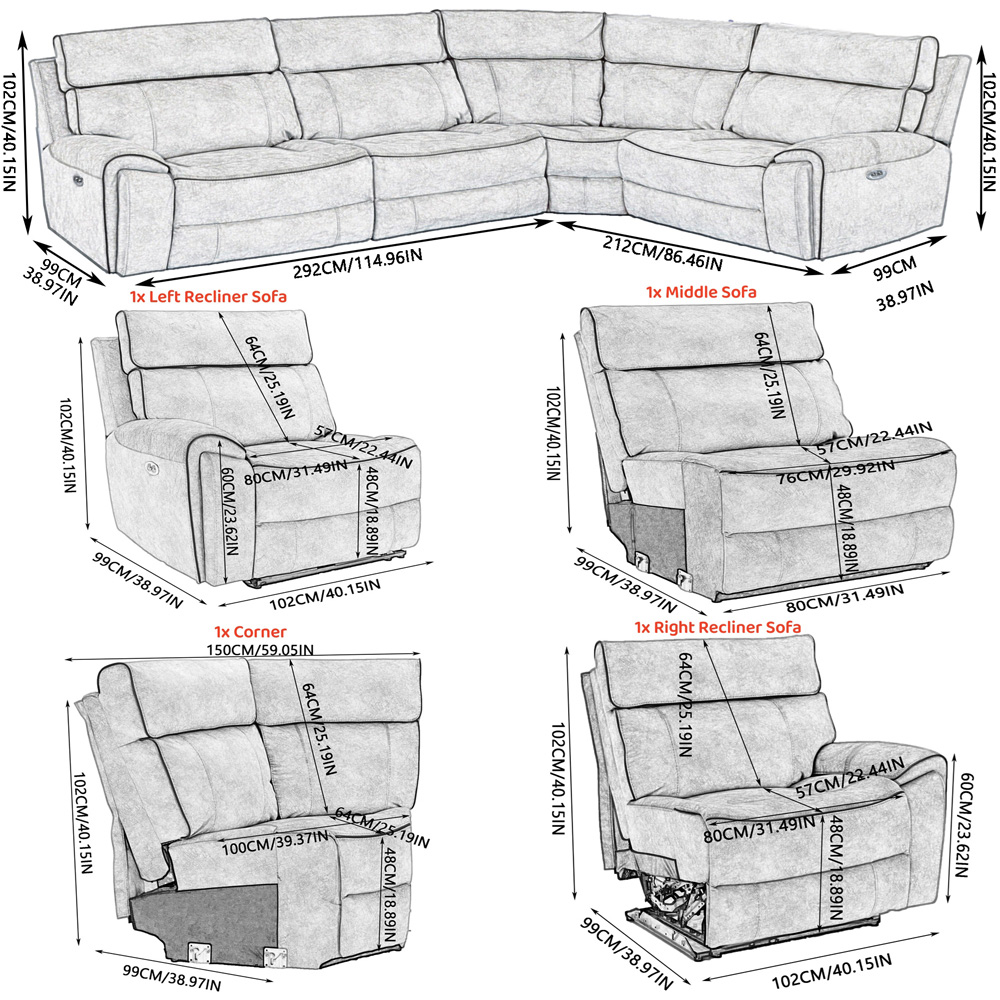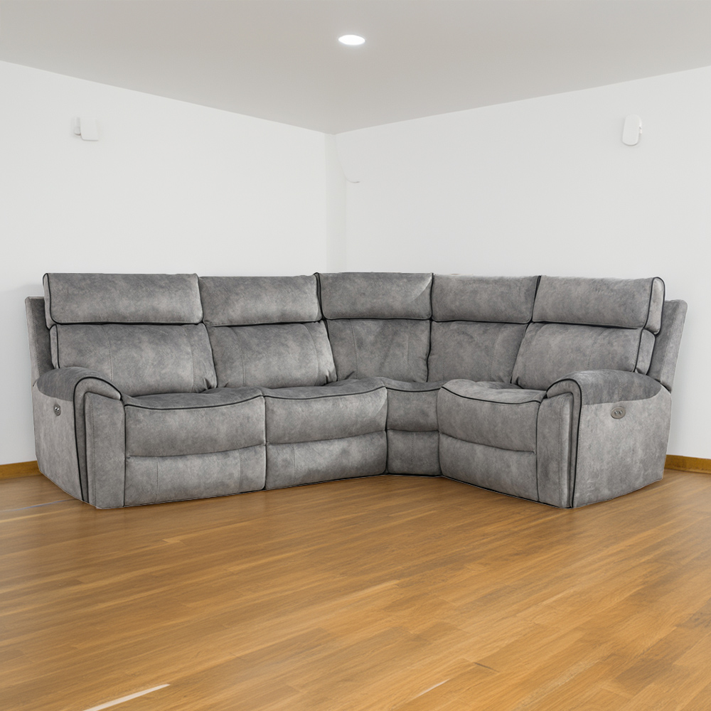 Transform your living space with the Furniture One 4 Seater Light Grey Power Corner Recliner Sofa Set. It comfortably seats up to four people and features pocket coil springs with foam for extra cushioning, ensuring maximum comfort. Crafted with the finest fabric upholstery, this sofa set is both durable and luxurious. The built-in recliner mechanism allows for easy adjustment, providing a relaxing seating experience. Each end of the sofa contains a single power recliner, conforming to the ergonomic curve for optimal support. With its sleek design and endless features, this sofa set is the ultimate addition to any modern living room.