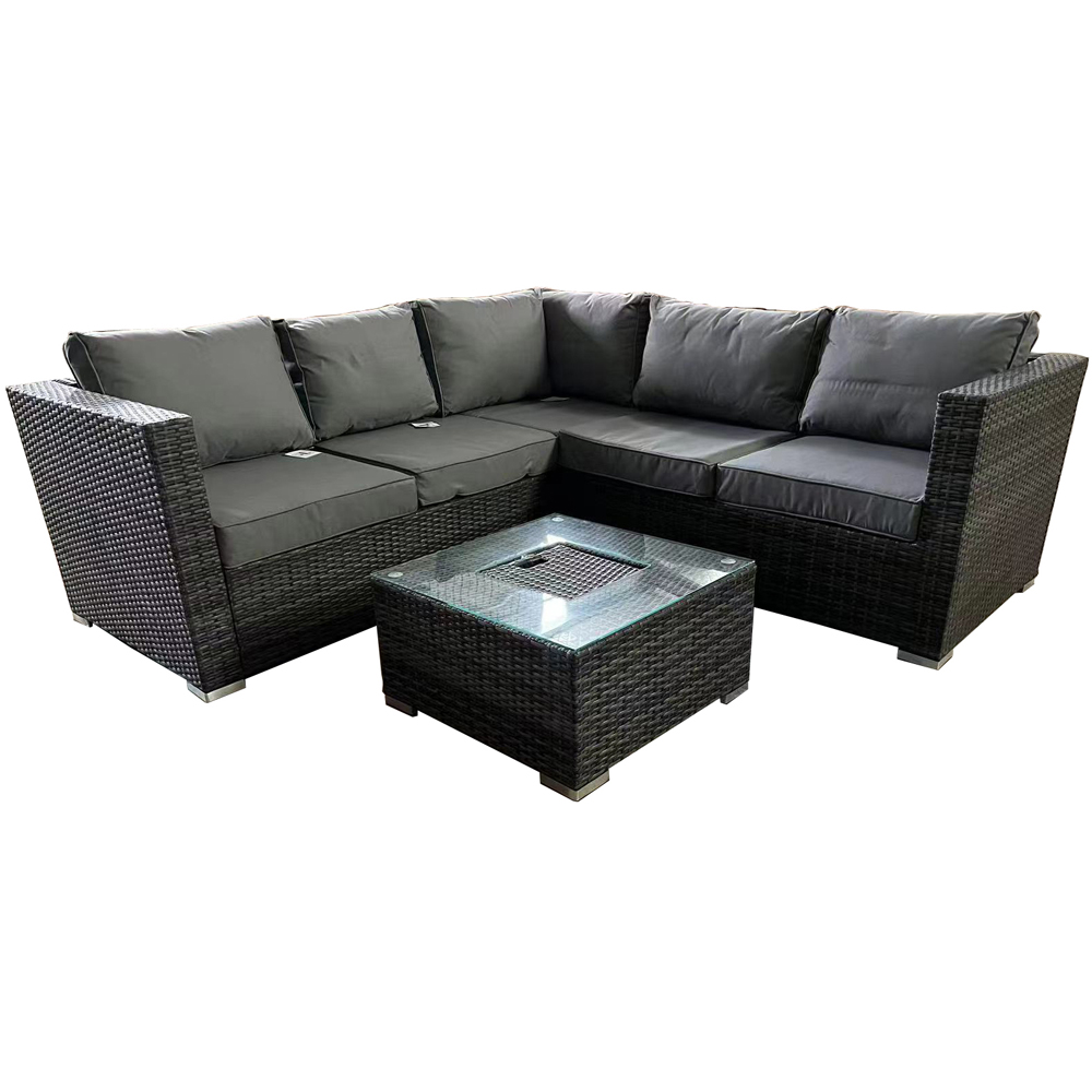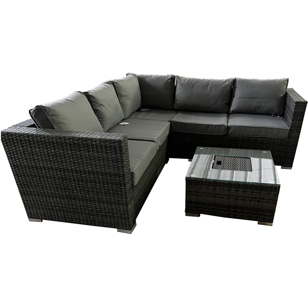 Redefine outdoor lounging with the Furniture One 5 Seater Grey Rattan Garden Corner Lounge Set with Ice Bucket. Spend summer evenings laughing with loved ones, drinks chilled, and everyone comfortably seated in your stylish outdoor space. Crafted with eco-friendly, weather-resistant PU rattan, this set includes a spacious coffee table and a built-in ice bucket, ensuring refreshments are always within reach. Don't let limited indoor space restrict your hosting capabilities; this elegant corner sofa, complete with deep-filled cushions, provides the perfect setting for relaxation and memorable gatherings, no matter the season. Sofa Dimensions: H65 x W199 x L195 x D75cm. Table Dimensions: H32 x W60 x D60cm. Table Diameter: 60cm. Weight: 45kg.