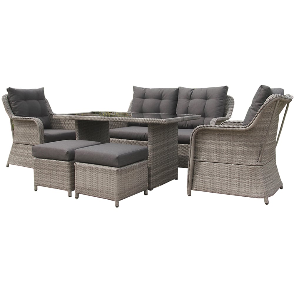 Durable Aluminium Frame -- The sofa set is constructed with a durable aluminium frame, wrapped in PE rattan, which makes it more sturdy, weatherproof, and UV-resistant. Premium PE Rattan -- Made from high quality, durable PE rattan weatherproof, UV-resistant, anti-fade, low maintenance, and long-lasting use. 8CM Soft Cushion -- Thicken 8CM showerproof cushions, and cushions and pillows cover can be removed and machine washed, saving your clean work. Tempered Glass Table Top -- 130*70*68CM dining table which will provide ample space for you to put various items. The glass top makes the cleaning easier.