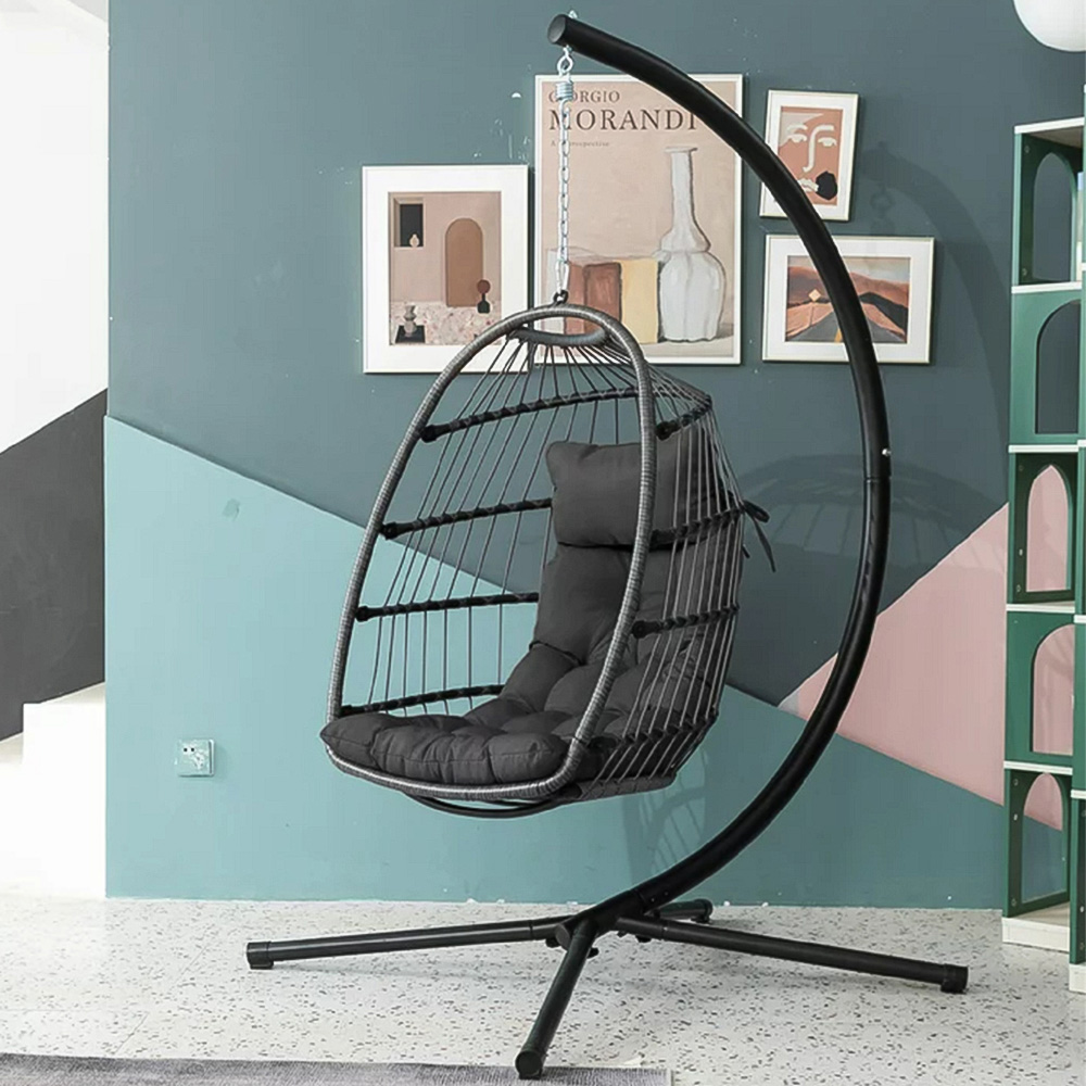 This Serwall hanging egg chair comes with a durable metal stand along with an egg and a matching cushion. Great for patios, porches, and lawns, and it is also the best choice for your living room or bedroom. Made with high-quality resin polyethylene wicker wrapped around a strong steel frame to ensure its strength and durability. The seat cushion is made of 100 polyester materials and polyester fibrefill cores to create perfect comfort. It's not only for use but also for decoration. Put it on your balcony to enjoy your leisure time!