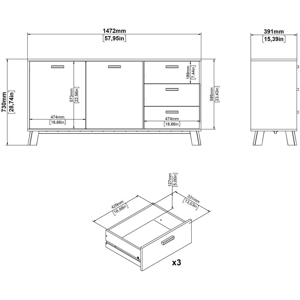Furniture To Go 2 Door 3 Drawer White and Brown Sideboard