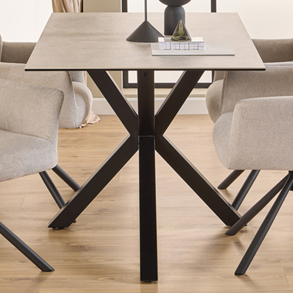 Elevate your dining experience with the Furniture To Go Heaven 4-Seater Dining Table, featuring a ceramic grey top that not only resists heat and scratches but also adds a touch of sophisticated charm. Perfect for both minimalist and rustic settings, this table's versatile grey tone and sculptural black base blend seamlessly into any decor, making it a practical yet stylish choice for compact dining spaces.