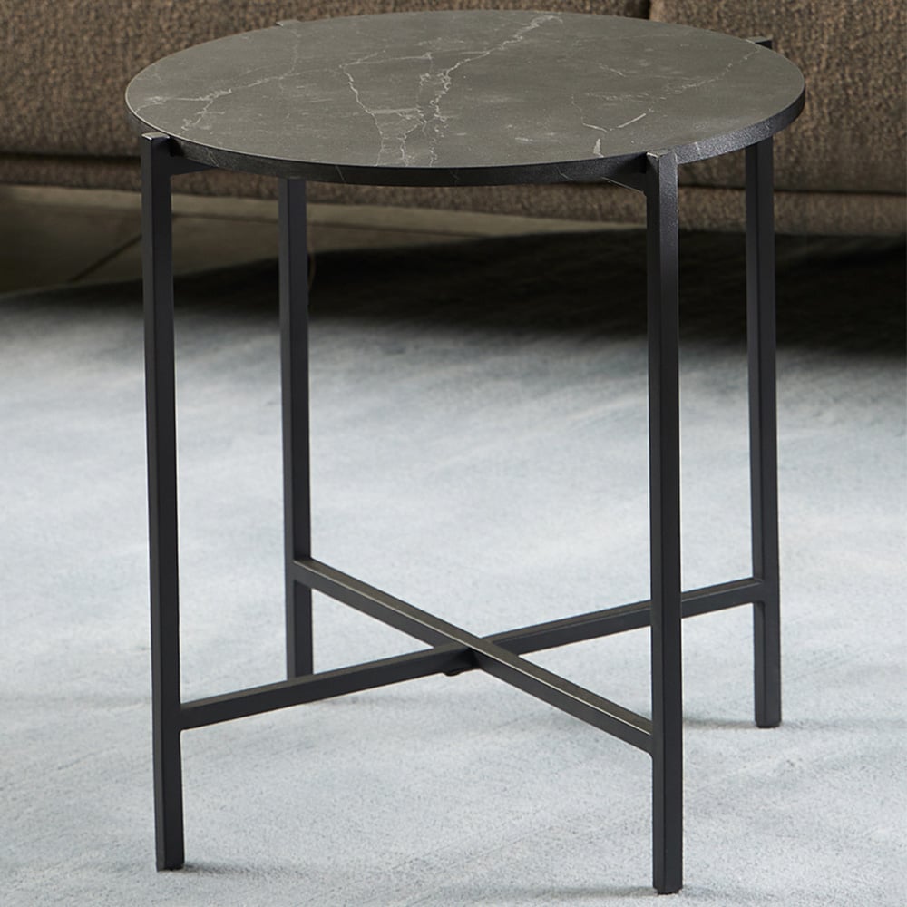 Celebrate the essence of French refinement with the Furniture To Go Lamoine Round Side Table in Matt Black, a piece where simplicity meets elegance. Inspired by the French approach to minimalism, this side table features a sleek black top that beautifully mimics the look of marble but with the practicality of easy upkeep. Its durable black steel base complements the minimalist design, making it a perfect addition to any living space. Whether it's placed next to a sofa or used as a standalone piece, the Lamoine Round Side Table brings a touch of contemporary sophistication to your home.
