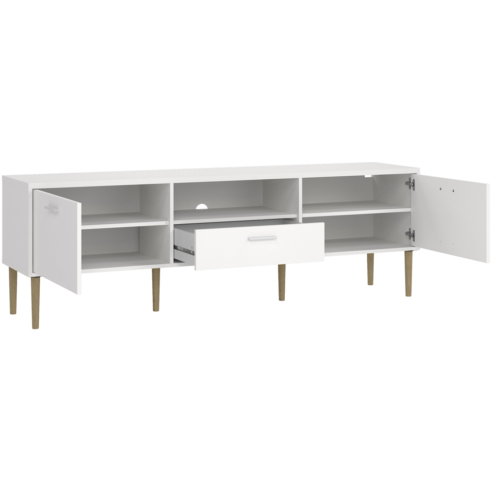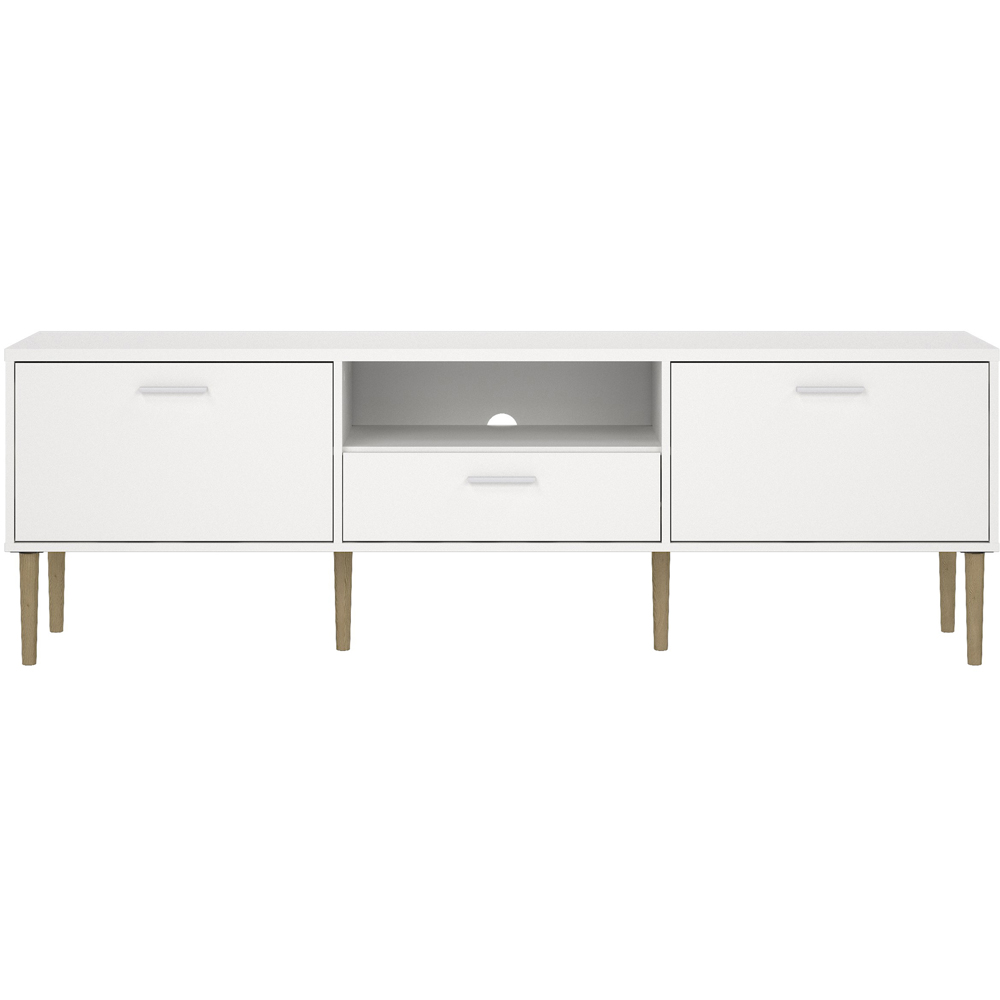 Upgrade your entertainment unit with Furniture To Go Media 2 Door Single Drawer White TV Unit. This TV unit features a traditional Danish design and is produced with an easy-to-clean foil surface. Made and manufactured in Denmark, it features a simple, low-profile, multifunctional design to keep all your media components organized. The simple yet appealing design includes three media compartments and one drawer, including one shelf behind each door for additional storage. The unit is easy to assemble - requires self-assembly.