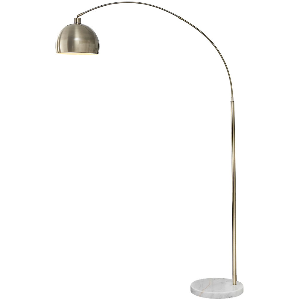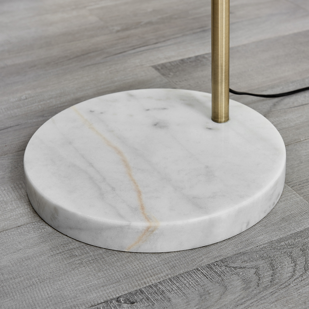 Illuminate your space in style with this Furniturebox Adelaide Gold Standing Lamp. The standing arc floor lamp is a mix of modern Scandi and retro vintage in style, comprising a solid and sturdy round white marble base with a gold metal arc arm and round gold metal lampshade. It suits a range of decor styles, from high glam maximalist to sleek and simple minimalist or industrial styles. Stands 198cm tall and comes with black corded cable and a rocker switch. Requires one 40W E27 bulb, which is included. Please click here to find our range of lightbulbs.