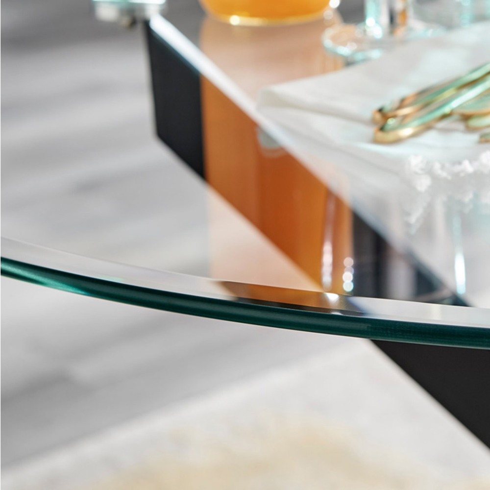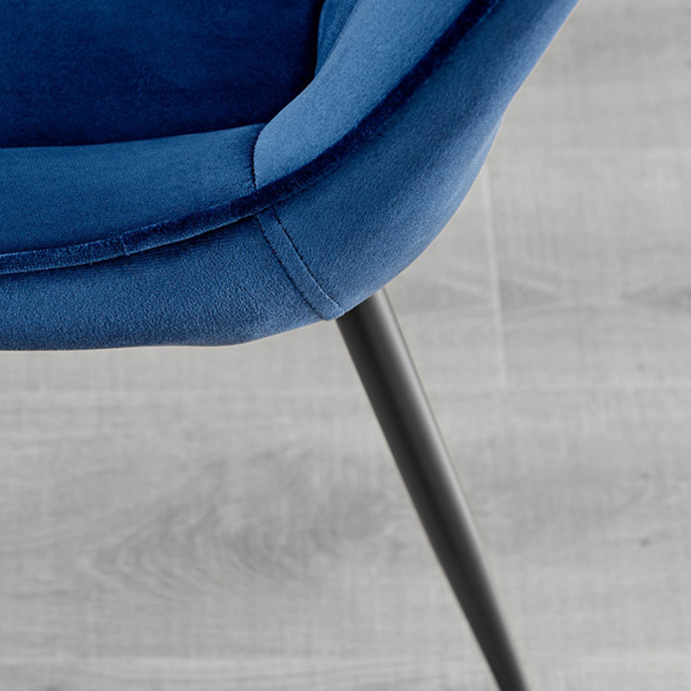 Add an elegant touch to your kitchen set with this Furniturebox Arona Cesano Six-Seater Round Dining Set, Navy and Black. This elegant Arona dining table is a stylish and modern combination of black, metal, and glass, making this item a real eye-catcher to add to your decor. The sleek black legs provide a strong and sturdy support for the table, whilst the unique intertwined nest design exudes modern style. With a generous 120 x 120cm surface, you can dine in style with up to six guests. The set includes six luxurious velvet upholstered Cesano dining chairs, which tie off this set nicely. The Cesano chairs feature gorgeous textured diamond stitching with an ergonomically designed curved seat pad blending seamlessly with the supporting medium-high backrest. The chairs also have black tapered legs, which adds a bold touch.