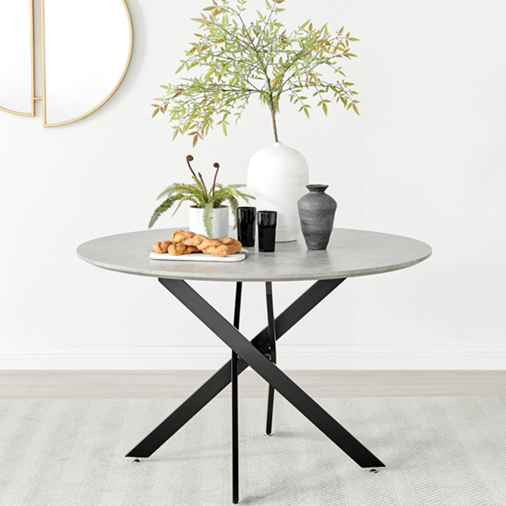 Furniturebox Arona Kensington Concrete Effect 6 Seater Round Dining Set Grey and Black