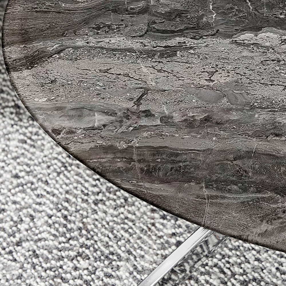 Furniturebox Arona Round Marble Effect Glass Coffee Table with Silver Legs