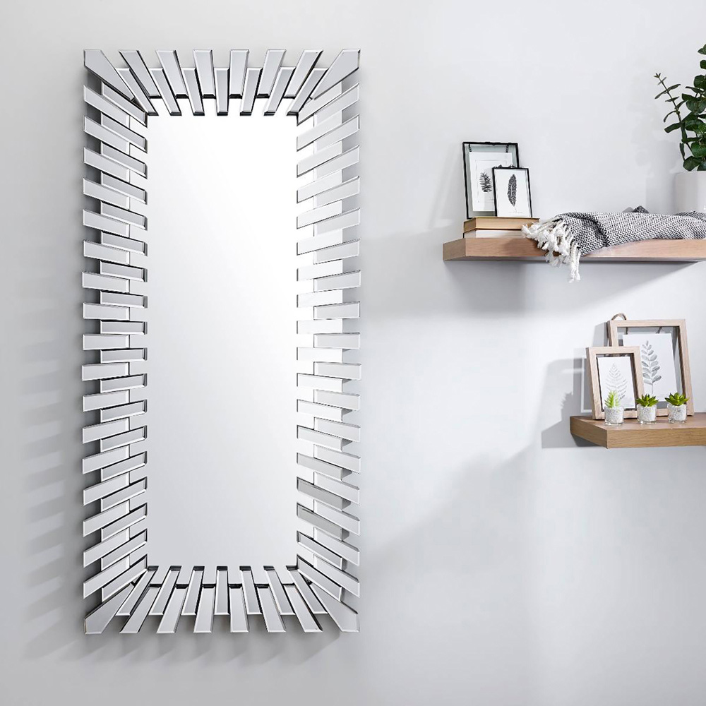 Looking for a sophisticated modern mirror? This Astra Large 3D Rectangular Full Length Mirror from Furniturebox will brighten up any living space and is perfect if you're looking for that fresh modern look. The frame is made up of angled segments of individually cut premium mirror glass. A mirror sits within the surround, which is ideal for everyday use. This is a large full-length mirror with dimensions 170 x 80cm, perfect for deciding those difficult outfit choices! The mirror can also hang on the wall making it very practical and allowing the mirror to fit into several different places around the house. So why not modernise your home with this beautiful statement-piece mirror? You won't regret it. Please note mirror is not suitable for bathrooms.