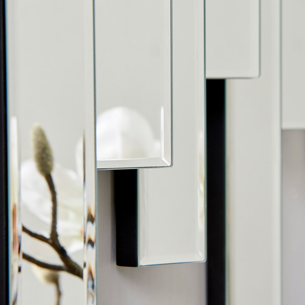Want to make a statement in your home? Look no further. The Aurora Medium Wall Mirror from Furniturebox is an artistic masterpiece that would be a standout feature in any home. The 3D mirror shards cascade down creating a rippled Aurora effect and the angled panels will brighten up any space in your home. Please note mirror is not suitable for bathrooms.