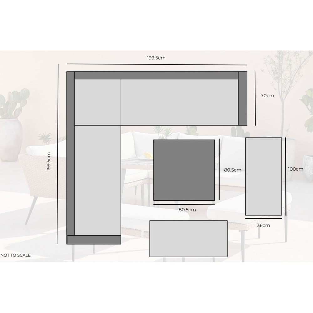Gather around and create lasting memories with the Furniturebox Capri Rattan 9 Seater Corner Dining Sofa Set Beige. This set is the perfect way to add some relaxed, informal garden seating to your outdoor space. Featuring a compact square polywood table, two separate two-seater benches and a five-seat corner sofa, this nine-seat garden set has plenty of room for everyone. A modern design with some industrial touches and some rustic elements, this is going to look great on a deck or patio, in a conservatory or pergola. The PE rattan is stylishly woven over a sturdy but lightweight steel frame. The plywood tabletop has a wood-grain effect and is sturdy and durable but lightweight and easy to keep clean. All the cushions are deep-filled with 8cm thickness for the seat cushions and 6cm for the back cushions for you to hang out in style and comfort. The PE rattan, polywood and cushions are all UV-resistant, so shouldn't fade. The frames are weather-resistant, and the cushions are splashproof (so if spills occur, pick up the cushion and give it a firm pat on the underside to encourage the droplets to roll off). However, the cushions should not be left outside or in damp conditions. Store them somewhere warm and dry. If they do get wet, then allow them to fully dry in the sun or somewhere warm before you store them. This set includes a water-resistant cover, but please note that this is not fully waterproof, and you should still store your cushions somewhere dry during wet weather and through winter. Total length of left-hand sofa section: 200cm. Total length of right-hand sofa section: 200cm. Sofa depth: 60cm. Sofa back height: 70cm. Sofa seat height: 31cm. Protect your garden furniture with our durable and waterproof covers. Explore our wide range of heavy-duty