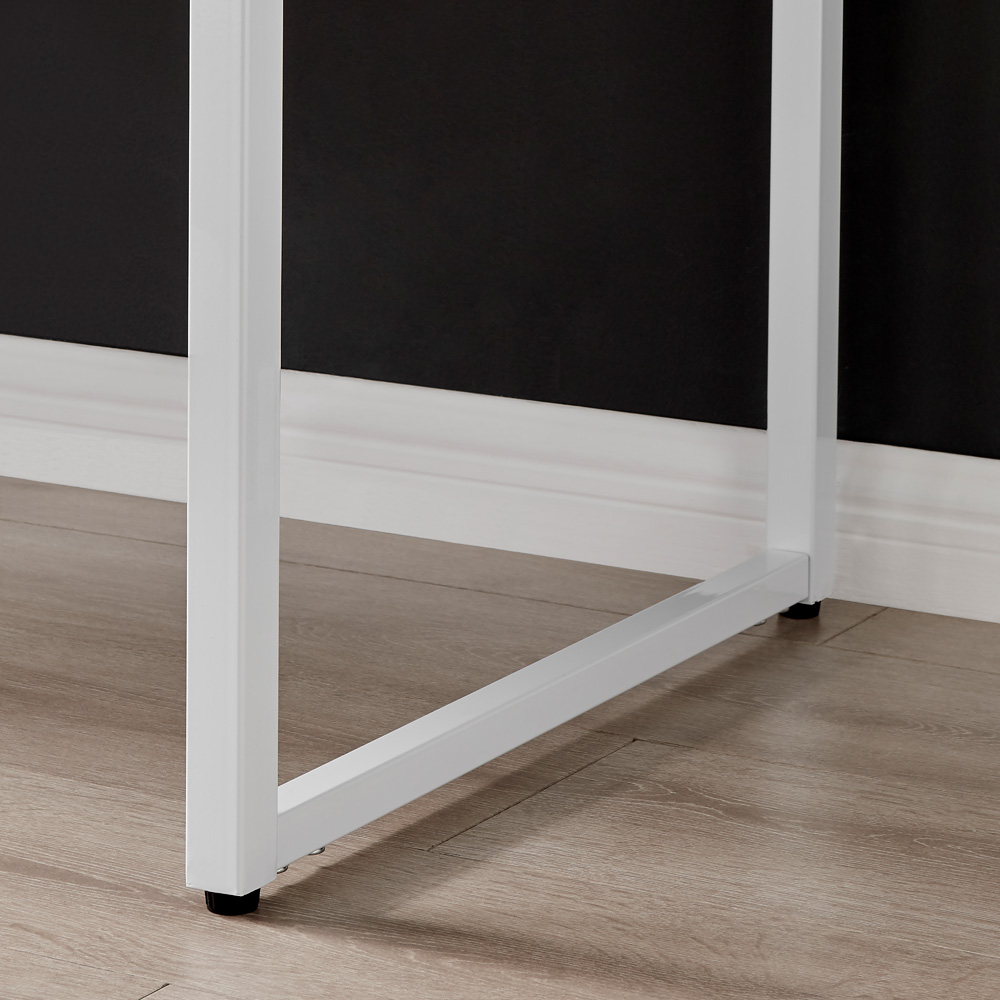 Elevate your space with Furniturebox Cedric Desk Grey and White. It is the perfect office desk for study, work or gaming. A simple yet practical piece of office furniture that will suit both modern and more traditional homes. The elegant pale grey top and bright white legs give a bright and uncluttered feel that'll look great in both contemporary minimalist and boho Scandi style spaces. With 120cm of table top space, there's plenty of room to work and keep all your essentials organised. Constructed from strong wood composite, finished with a high-quality scratch resistant pale grey melamine veneer with a marbled effect, and sitting on strong iron powder-coated legs in white, this desk is built to last.